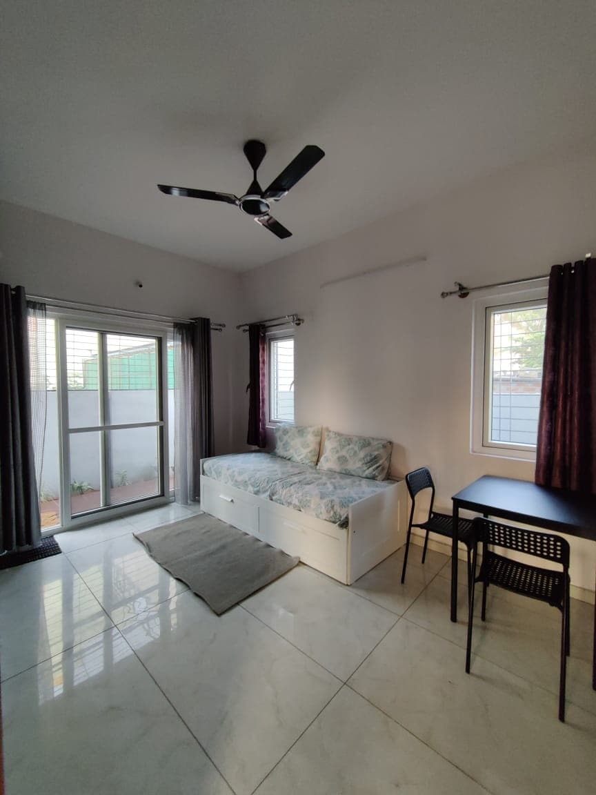 Bienvenido a nuestro moderno y acogedor apartamento tipo estudio ubicado en una zona residencial serena de Bangalore. Disfruta de la tranquilidad de este tranquilo refugio equipado con aire acondicionado para mayor comodidad en cualquier clima. Transmite sin problemas con WiFi de hasta 100 mbps y estaciona cómodamente sin complicaciones. Saborea el té y el café de cortesía mientras te relajas en colchones de primera calidad vestidos con sábanas de calidad. Te protegemos con el champú y el jabón proporcionados para una estadía sin preocupaciones. Experimenta la comodidad y la conveniencia en su mejor esfuerzo.