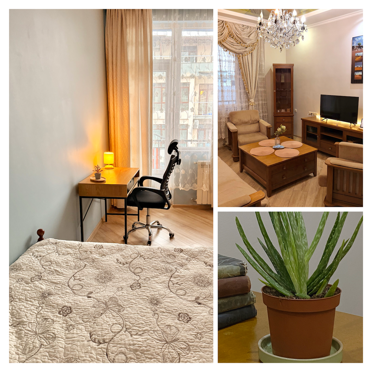El apartamento está situado en Batumi (distrito de Makhinjauri), justo al lado del jardín botánico más grande de Europa🌿. Por la noche, el aire se llena de aromas frescos de eucalipto, y desde el balcón se puede disfrutar de una vista al mar🌊. La playa está a poca distancia a pie, y hay una acogedora hamaca para relajarse mientras se observa la puesta de sol✨. Se puede llegar al centro de la ciudad en unos 15-20 minutos, dependiendo del tráfico.