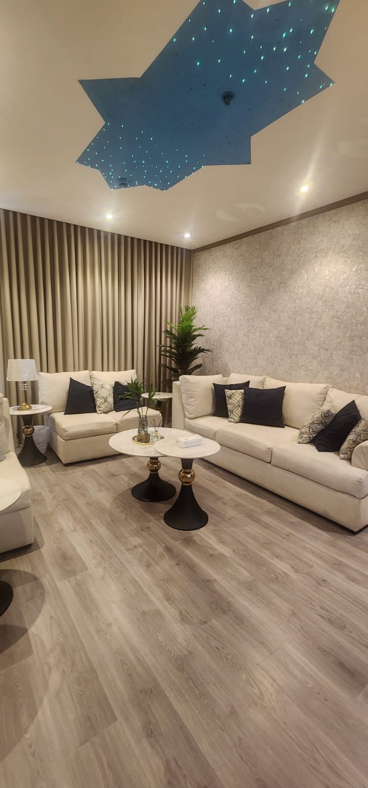 Apartamento de lujo, tranquilo y espacioso en un edificio residencial nuevo. Hay un ascensor para facilitar el acceso a la vivienda, entrada independiente y alta privacidad. Hay un empleado para atender a los huéspedes durante la estancia para entregar los pedidos y limpiar a diario. (Wifi de alta velocidad disponible en la vivienda) (supermercado, lavandería) y aparcamiento privado para 2 coches Tenemos una pantalla de entretenimiento de 65 pulgadas Con suscripción a Netflix 📺 Ver TV 📽️ Cerca de Abhur 🌊 10 minutos Cerca del aeropuerto de Jeddah ✈️ 15 minutos Cerca del estadio Al-Jawhara 🏟️ 4 minutos Cerca de Superdome Jeddah Dome 🎉 6 minutos