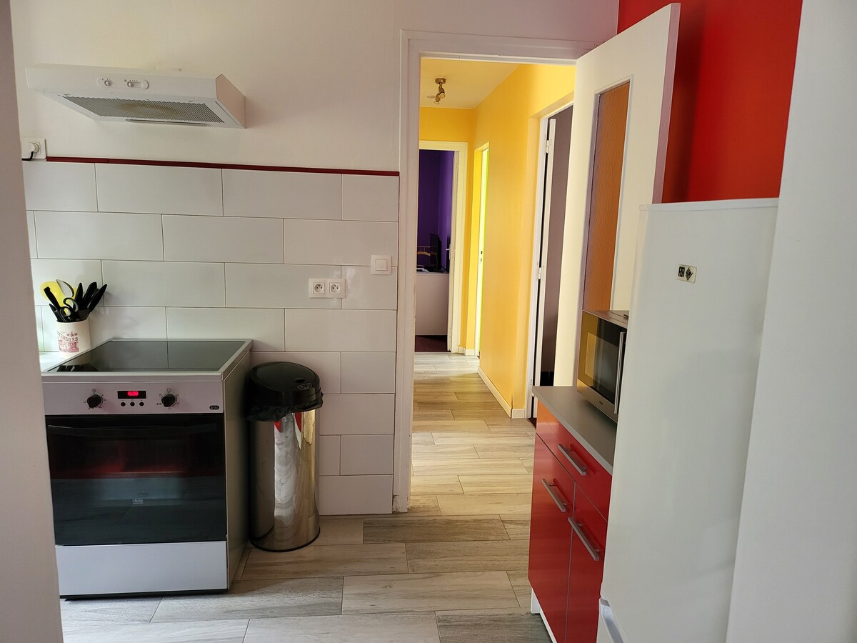 Bonito apartamento situado en pleno centro de la ciudad de Sens (l'amande) cerca de la catedral, el ayuntamiento, el mercado cubierto, y las diversas tiendas y restaurantes. Podrá disfrutar de su equipamiento completo con la cocina abierta a la sala de estar, su dormitorio con cama doble y armario grande, su baño con ducha y WC, sala de estar equipada con un gran televisor con TV naranja y Netflix. Una zona de oficina con wifi gratuito. 1 cuna y 1 trona a petición.
