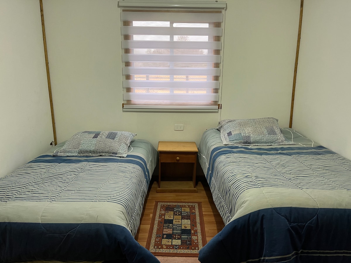 Hostal amaranta es una casa familiar ubicada En el centro de Vilcún, con wifi, calefacción, agua caliente, recepción las 24hrs, y áreas comunes a libre disposición. Esta es una habitación doble, con 2 camas individuales, en las demás fotos podemos ver las áreas comunes. Tambien ofrecemos habitaciones matrimoniales, dobles y triples publicadas en esta misma aplicación.