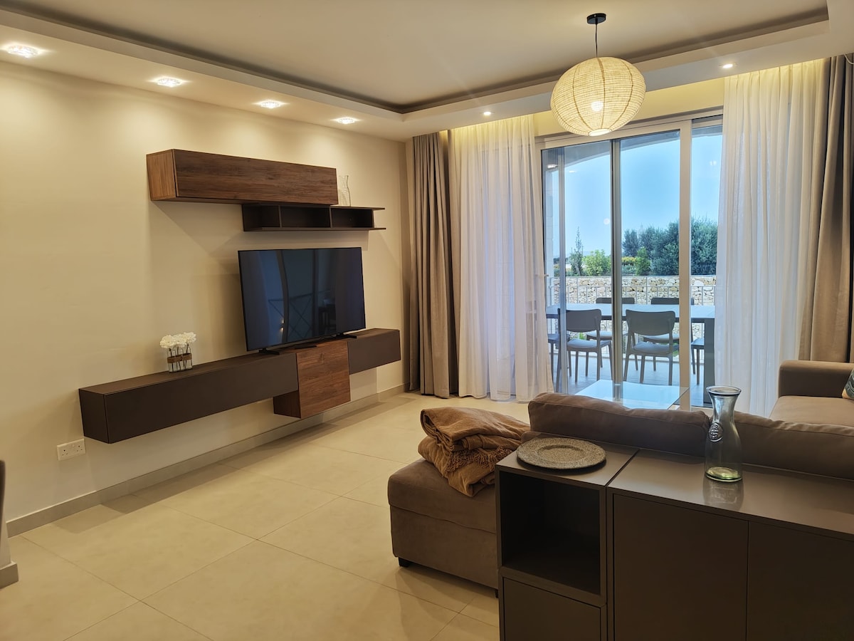The villa is set in a relaxed neighborhood only 5 minutes away on foot from the pharmacy, green-grocer and small convenience store from where you can easily get your daily needs. Further up, around 15-minute walk there is a larger supermarket which also does deliveries. Also nearby, precisely in St. Thomas Bay area, you will find charming pizzerias, cafes, and restaurants. Should one wish to opt for the local public transport, you will also find a bus stop a few meters away from the property.