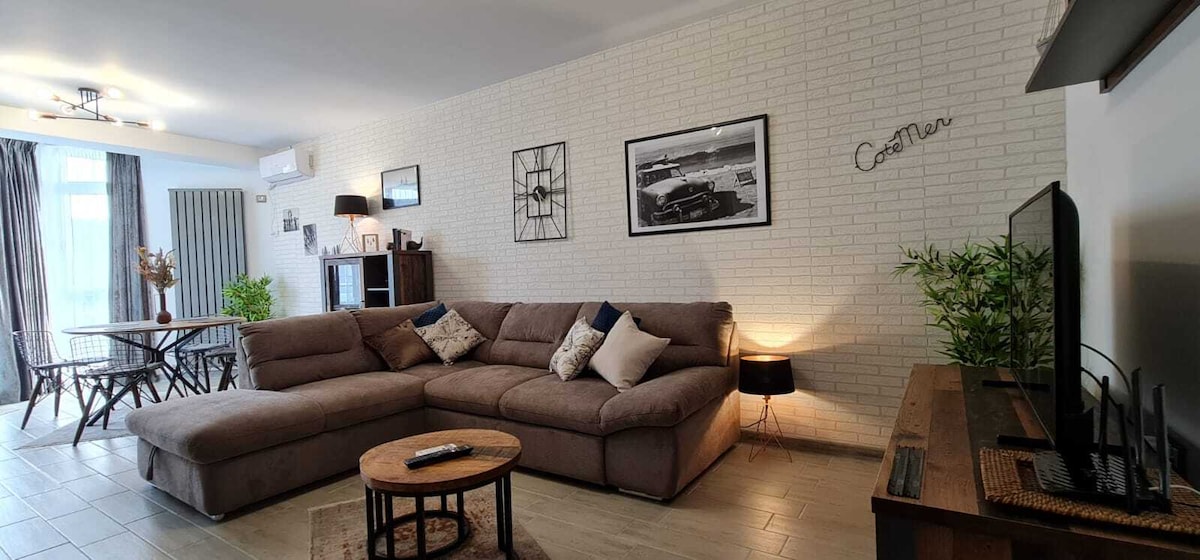 El apartamento Sunrise Deko es una unidad nueva, con vista lateral al mar en un piso alto y tranquilo Unidad ✔ completamente nueva, perfecta para una familia con dos niños o para 4 adultos. ✔ Cocina totalmente equipada, lavadora ✔ El área de playa es una de las mejores de Mamaia Nord ✔ Muy cerca puedes encontrar diversos restaurantes y bares de playa. ✔ A pocos pasos del nuevo supermercado Lidl Mamaia Nord. ¡Café✔ Nespresso por cuenta de la casa! Estamos deseando recibirte.