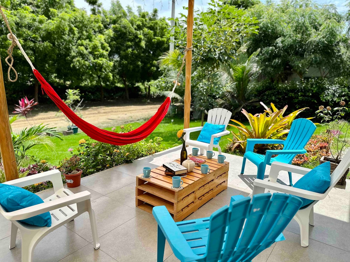 Punto Cerca del Mar 🌊Casa en Cdla. Privada. 📍 Ubicada en una Cdla. privada, a solo 2 min de Montañita y Olón. 🏡 Casa totalmente equipada para una estadía con amigos o familia 🌳 Áreas verdes que brindan paz y 🏖️ sala exterior con hamacas ☕ Cocina con cafetera, café, agua, azúcar y té para preparar tus comidas 🛏️ Habitaciones cómodas con ❄️ A/C en cada una. Pregunta por asistencia en cocina. 🌊 Desconéctate de la rutina y deja que el mar te recargue.