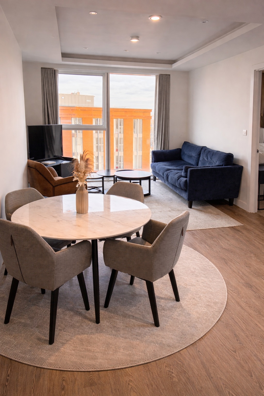 Stay in a high-spec apartment in the heart of Manchester, perfect for business trips, weekends away, concerts, and city breaks. The highlight is access to luxury on-site facilities including a gym, pool and spa area—ideal for unwinding in the morning or ending the day properly. Inside, expect a sleek, modern finish with hotel-style comfort: quality furnishings, a fully equipped kitchen, fast Wi-Fi, and a clean, contemporary space designed for relaxing after a busy day.