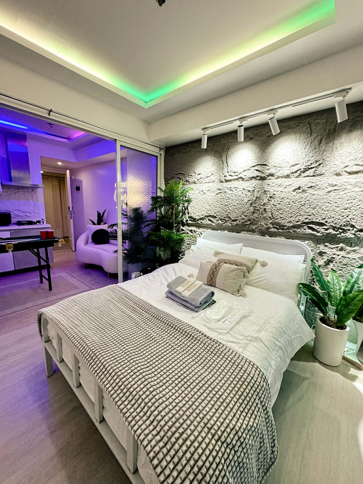 Welcome home!Please NOTE that the Wavepool is CLOSED every Tuesday for maintenance. Experience city resort vibes in our Cozy 1 Bedroom Condo Unit for 2-4 pax Azure Staycation! Placed near the famous Azure South Man-made Beach, SM Mall,& Shops for your needs. The rates shown are good for 2 pax only, added fee for extra guest, max of 4. Rates depends on Airbnb discount and/or its additional fees. Rates may increase on a Holiday. For Party Decor, we need a 5-day notice prior your stay to prepare.