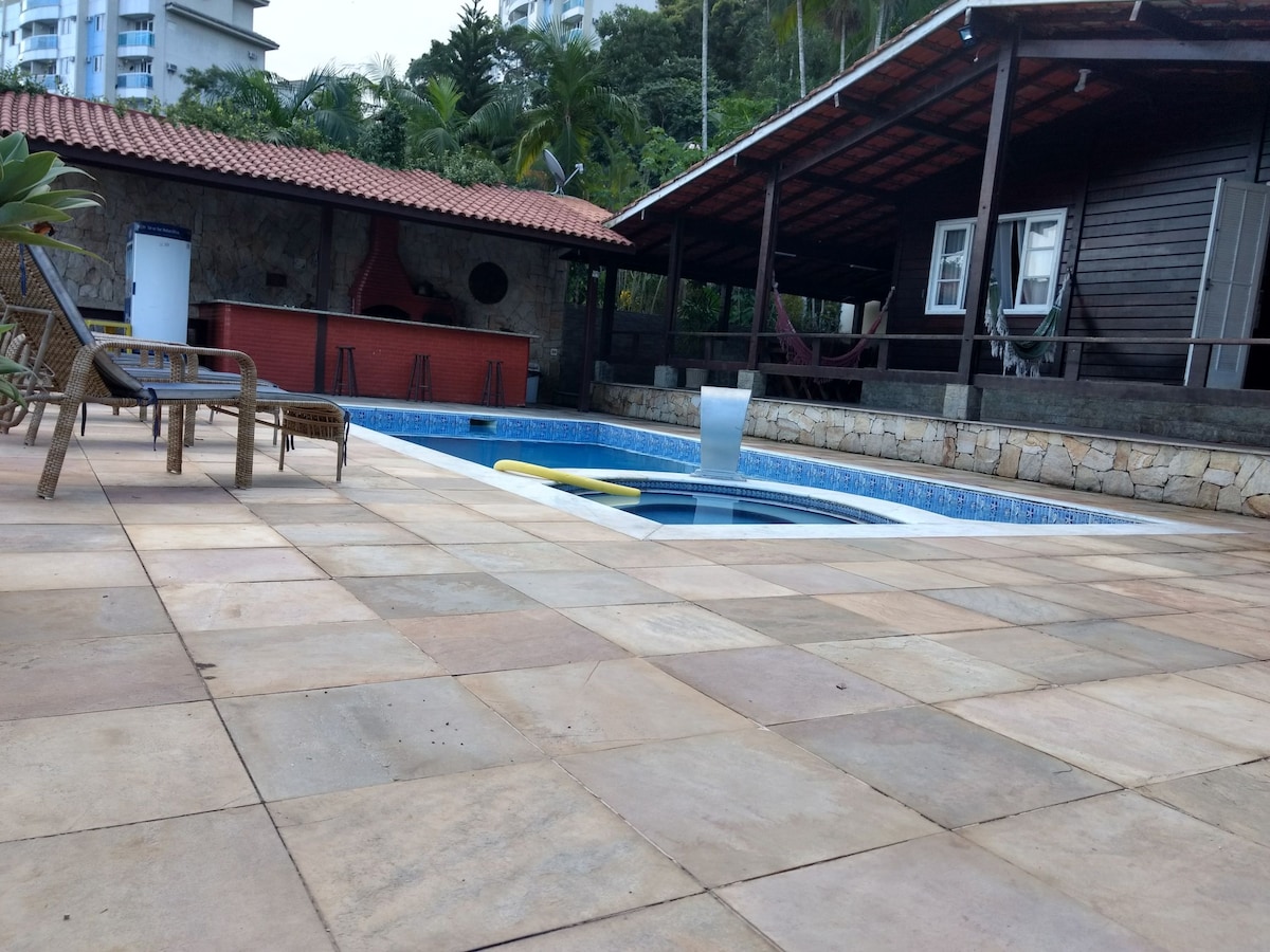HERMOSA CASA DE PIEDRA para 9 personas, en Mangaratiba, en condominio cerrado (cond. Guity). Cascada privada con barbacoa cubierta al lado y un espacio para fogatas. Vista total al mar y a 50 metros de una playa con aguas tranquilas, exclusiva del condominio, ideal para niños y ancianos y para practicar deportes como natación, stand up paddle y kayak*. La casa tiene 3 dormitorios con aire acondicionado, 2 baños, sala de estar espaciosa y balcón. Internet súper rápido: 500MG *alquiler disponible