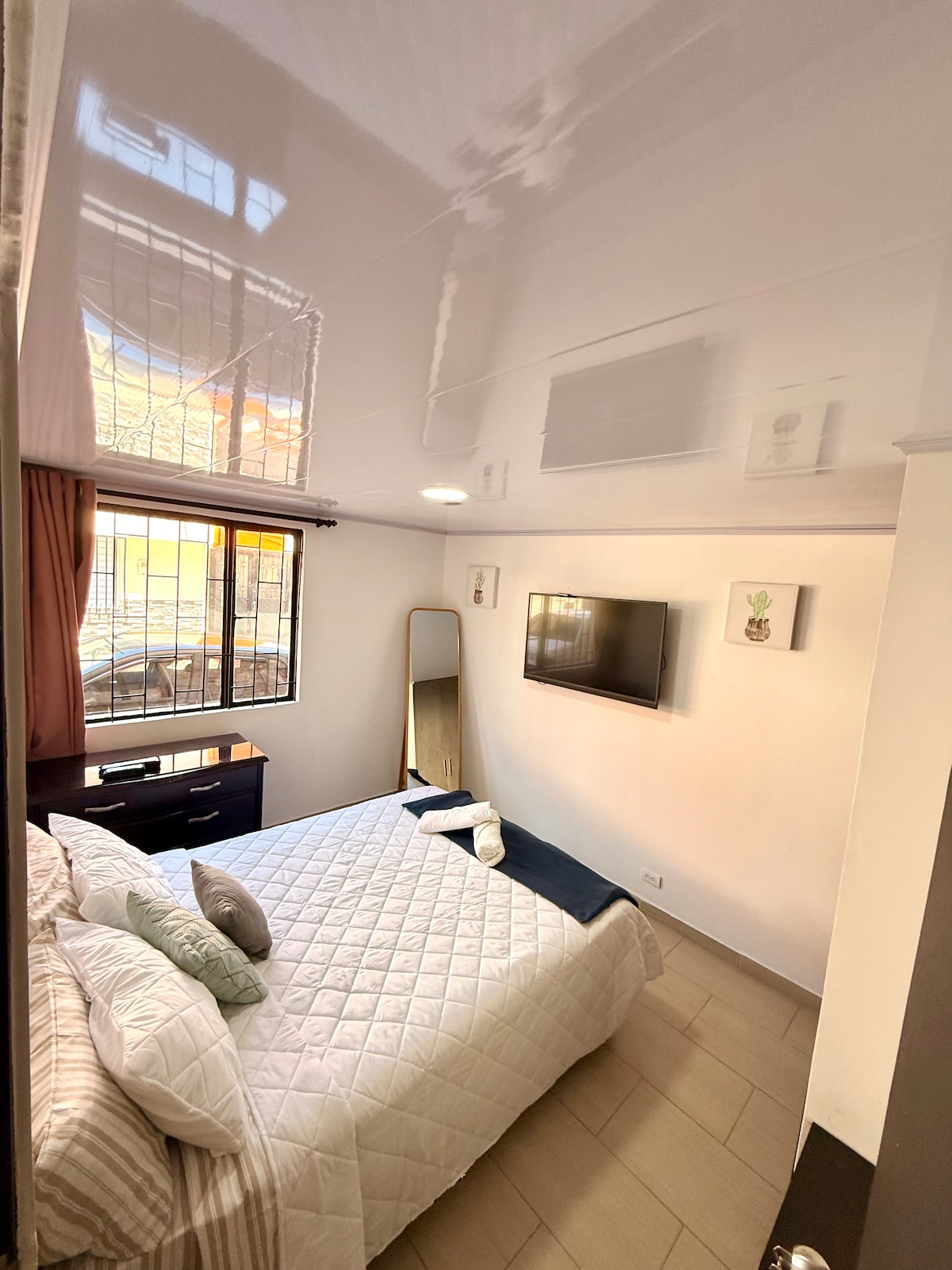 Brand new beautiful studio apartment, equipped kitchen with appliances and utensils. Laundry room with washer and dryer, a fast wifi network and working space. It is located right on the Milan's boulevard (Paseo de Milan-Zona G) on Carrera 23. Close to all the most famous restaurants, bars and the bowling alley. Very safe area with excellent access to public transportation. Three blocks from "El mirador de Niza", about 10 minutes walk to "El Cable". Private building.