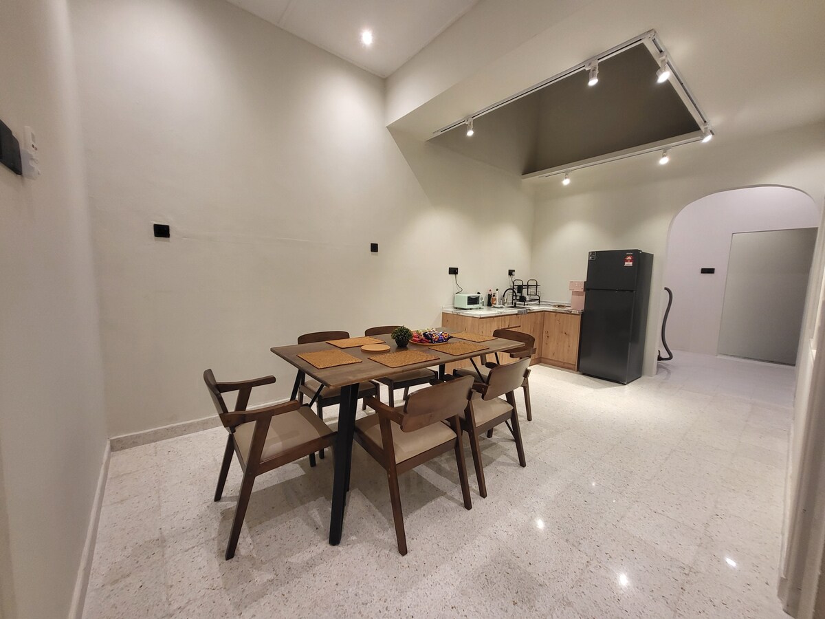 Ubicada en Ipoh, Perak, en Jalan Wu Lean Teh. Nuestra casa de huéspedes tiene capacidad para 14 personas con sala de estar con aire acondicionado, 4 habitaciones con aire acondicionado (6 camas tamaño queen, 2 individuales), garaje para 3 coches, comedores interiores y exteriores, calentadores de agua, wifi, SmartTV, Netflix, TV Box, hervidor de agua, cocina de inducción, lavadora y servicios. Acogedora y confortable casa de vacaciones estratégicamente ubicada a solo 1 minuto de los mejores lugares para comer, a 6 minutos del centro de la ciudad de Ipoh, a 5 minutos del estadio Ipoh, a 9 minutos del aeropuerto de Ipoh, Tambun Lost World y Stesen KTM.