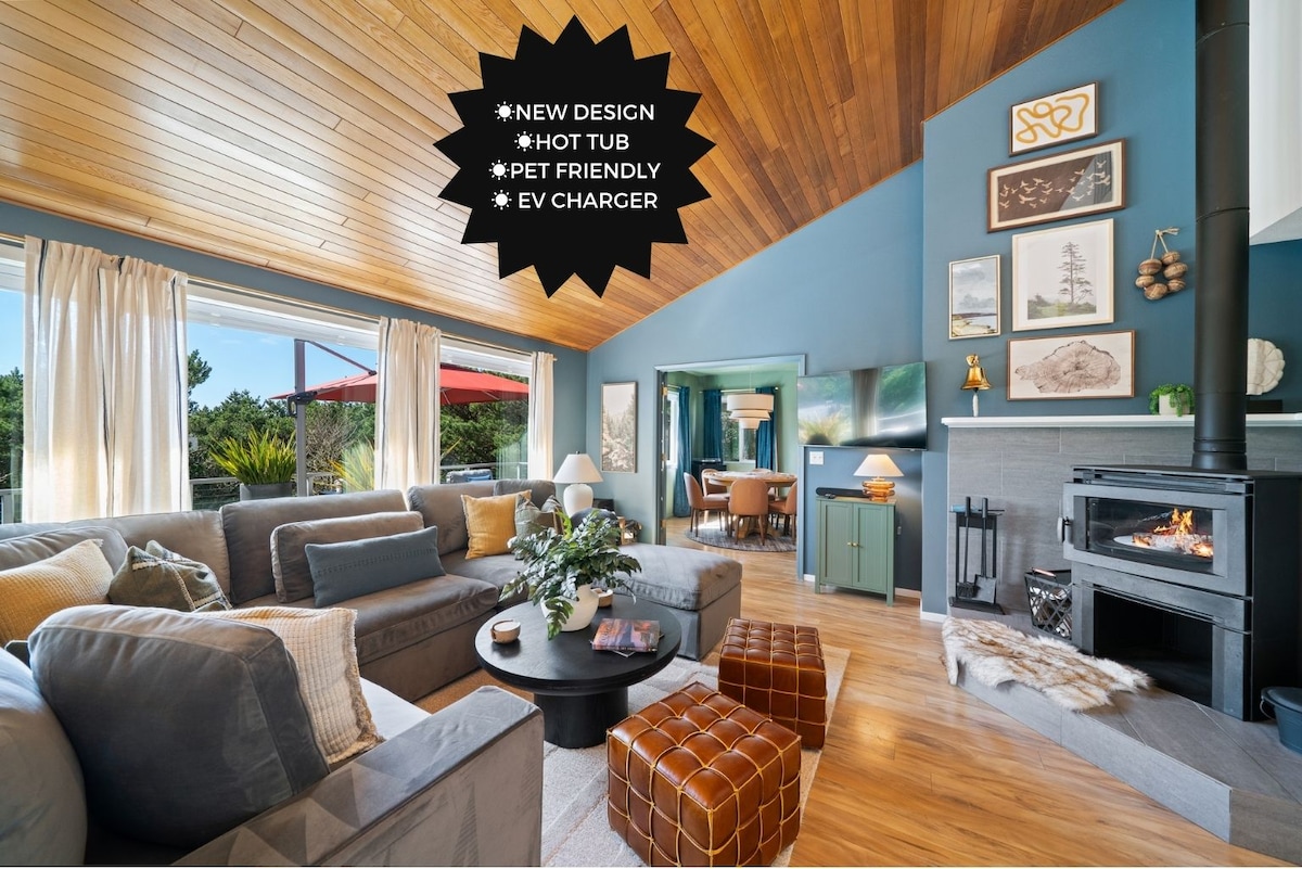 ¡Casa espaciosa, a media manzana de la playa! ¡A pocos pasos del mar! Acomódate junto a la chimenea y lee un libro, disfruta del encanto nostálgico de ver una cinta VHS en el reproductor de VCR, reproduce un disco en el fonógrafo, sumérgete en el jacuzzi, da un paseo en bicicleta por la ciudad o alrededor del parque estatal Nehalem, enciende un fuego en la chimenea de leña y mira las estrellas, observa la puesta de sol sobre el océano y bebe una taza de café caliente con los sonidos de la naturaleza, bebe una copa de vino junto a la mesa de fuego, etc.