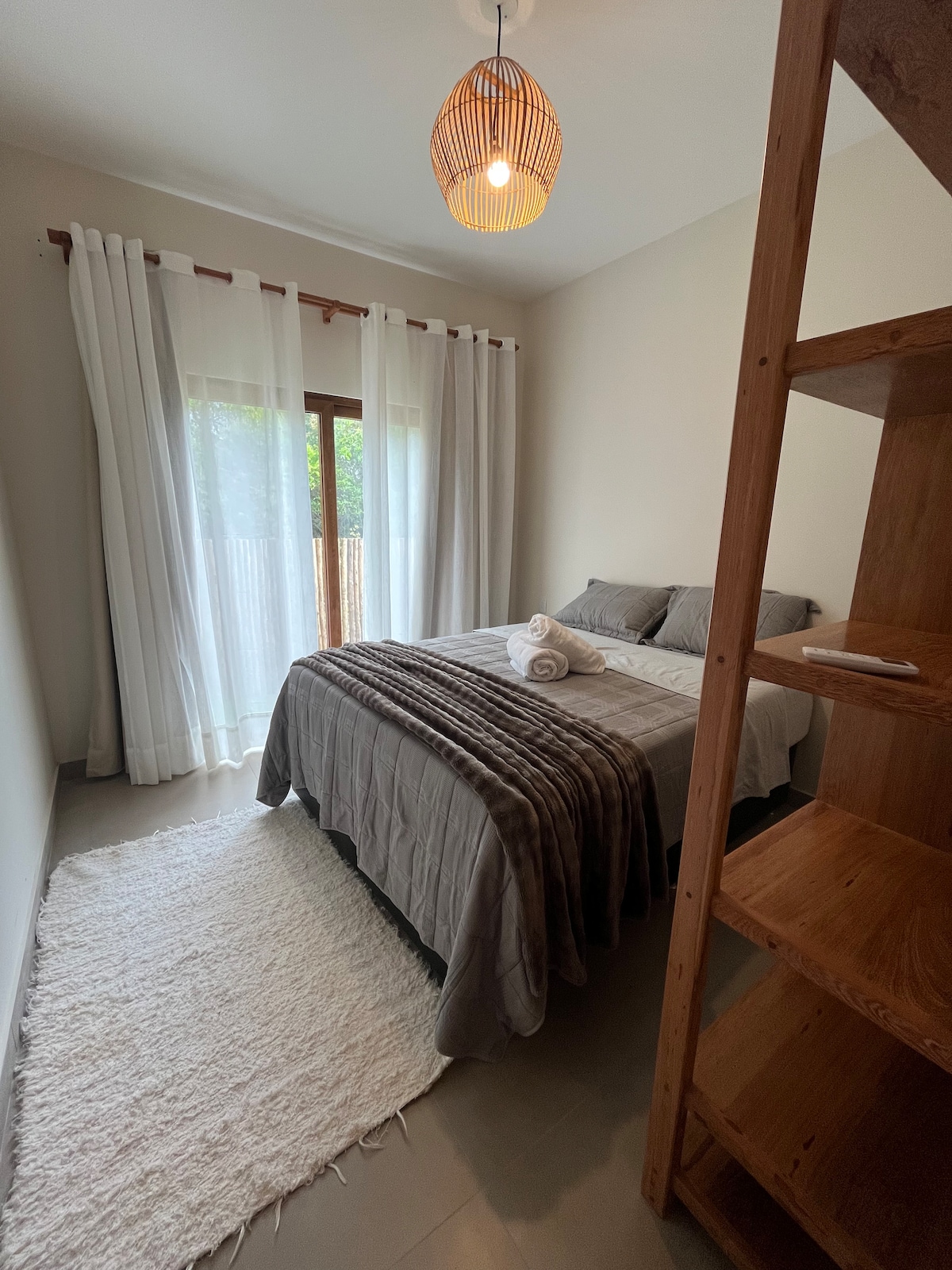 Piso en un condominio frente a la playa (condominio Villa do Pescador), privado, espacioso y acogedor, con cocina PRIVADA, balcón, hamaca, mesa de comedor/oficina en casa en el balcón, cama tamaño queen, aire acondicionado dividido, sábanas de algodón puro, sin televisión en red abierta, solo Netflix y wifi de cortesía. Un máximo de 3 personas, pagando una tarifa adicional. Súper bien ubicado, cerca de las tiendas locales.