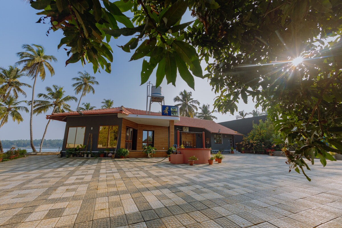 Una propiedad mejor calificada en Udupi que es una hermosa villa de 3 dormitorios EN LA PLAYA con una decoración única de ladrillos expuestos y puertas francesas que se abren a la zona del césped con una vista completa de la playa. Perfecto para familiares y amigos que buscan una estancia privada increíble. Esta casa también aparece destacada en varias películas. ¡Relájate con un cocinero local para garantizar una comida increíble durante tu estadía según tus deseos dietéticos! Está ubicada en las inmediaciones de todos los lugares turísticos de visita obligada en Udupi - Malpe.