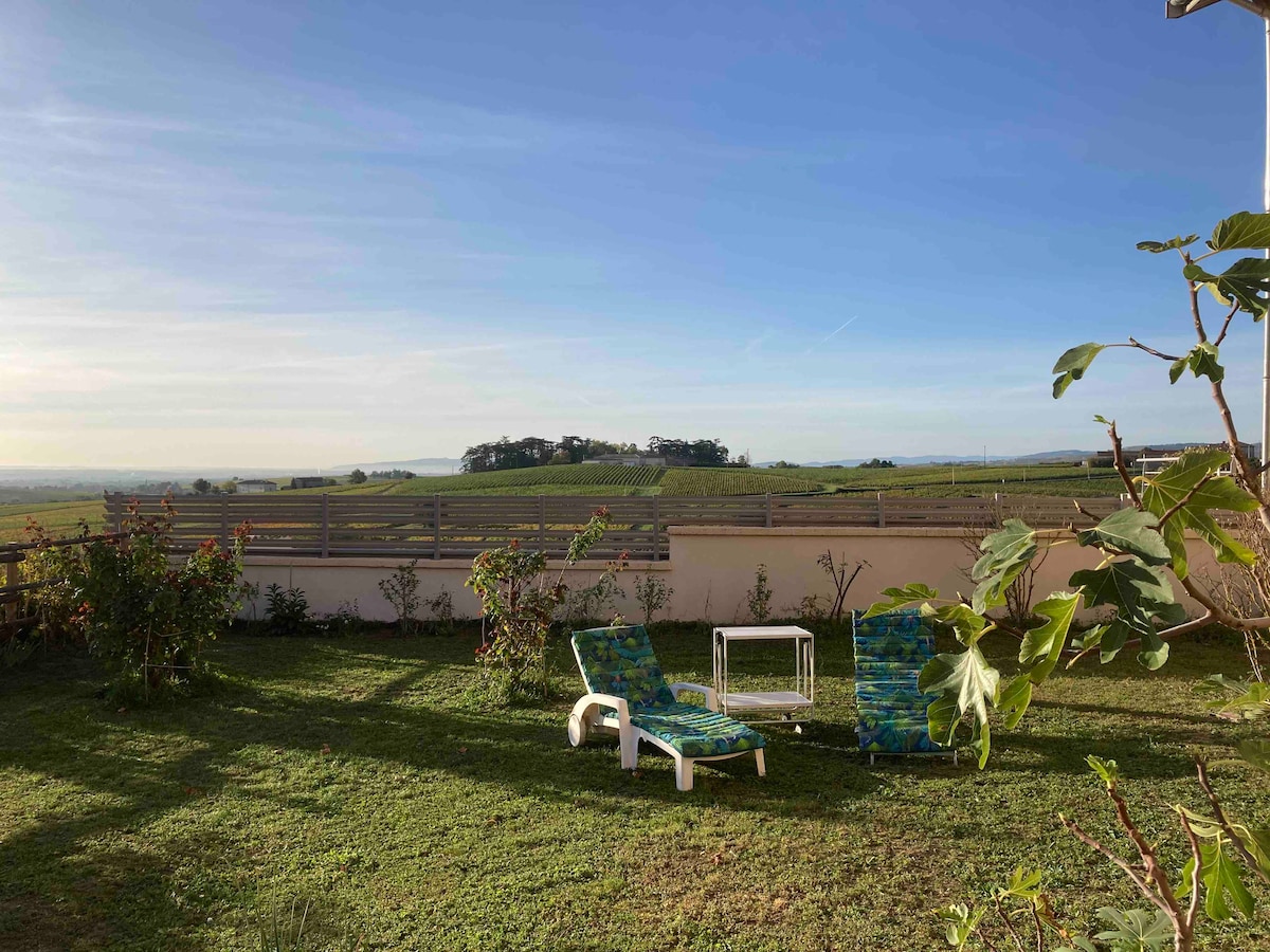 Apartamento situado en la planta baja de una casa nueva en casa de un viticultor. El alojamiento consta de un dormitorio grande, una cocina, un baño y una terraza privada. Pequeño rincón tranquilo en medio de los viñedos con vistas panorámicas, ideal para los amantes de la naturaleza y los deportistas (bicicleta con una vía verde a menos de 2 km, correr, senderismo, equitación). A 45 minutos de Lyon.