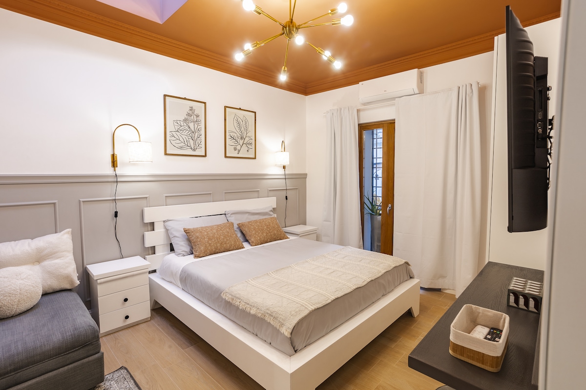 En la famosa y pintoresca plaza San Giovanni della Malva, el corazón de la vida nocturna en Trastevere. El exclusivo palacio de dos plantas está completamente dedicado a nuestros huéspedes. En la primera planta hay una suite de 40 metros cuadrados amueblada con un estilo elegante, con cama de matrimonio, un cómodo salón y un baño con ducha. En el segundo piso, una habitación de 20 metros cuadrados te da la bienvenida con cama de matrimonio y baño privado y acceso a la terraza de doble nivel.