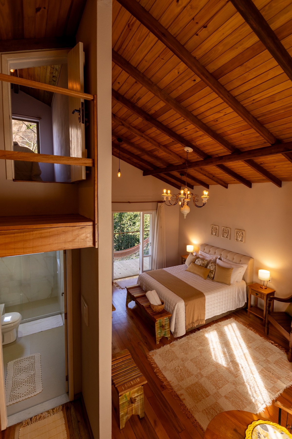 Chalet de madera con 2 dormitorios, baño, cocina completa, balcón y zona al aire libre, disponible para un máximo de 2 parejas, con un delicioso desayuno hecho a mano incluido en la reservación. Además, nuestra ubicación es privilegiada, estamos a 3 km del centro de Venda Nova do Imigrante- ES y a 13 km de Pedra Azul- ES. Ven a vivir esta experiencia y relájate con toda la familia en este lugar tranquilo, en contacto con la naturaleza. Nos encantará recibirte a ti y a tu familia.