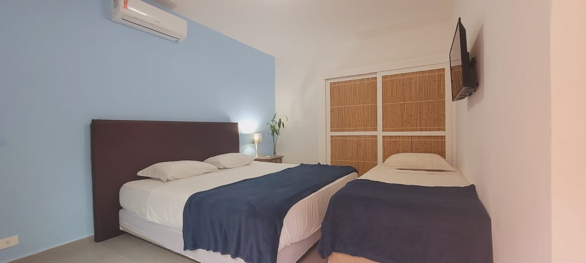 Descubra su refugio perfecto en este funcional apartamento de 62 m², diseñado para brindarle una estadía excepcional con toda la comodidad y calidad que se merece. Al salir, encontrará una encantadora zona exterior, con una refrescante piscina para relajarse bajo el sol. Los huéspedes tienen acceso a un baño y lavandería, que se comparten, lo que garantiza la comodidad. Para aquellos que buscan una experiencia grupal, también tenemos la opción de alquilar los 4 apartamentos.
