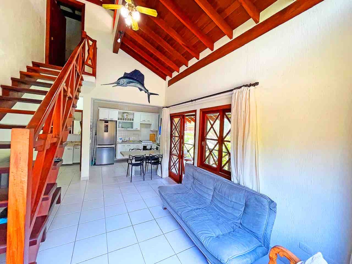 Propiedad ubicada en un condominio con piscina y zona de barbacoa. Alojamiento de estilo dúplex. Planta baja: - Habitación con aire acondicionado y sofá cama. - Cocina integrada equipada con nevera, placa de cocción, horno eléctrico y utensilios básicos. - Baño completo. - Área de servicio Planta superior: - Cama matrimonial. - Beliche Aire acondicionado - Dos ventanas que garantizan una buena ventilación e iluminación natural Importante: el huésped debe traer ropa de cama y toallas. Tarifa de limpieza: 120,00 R$ (tarifa única).