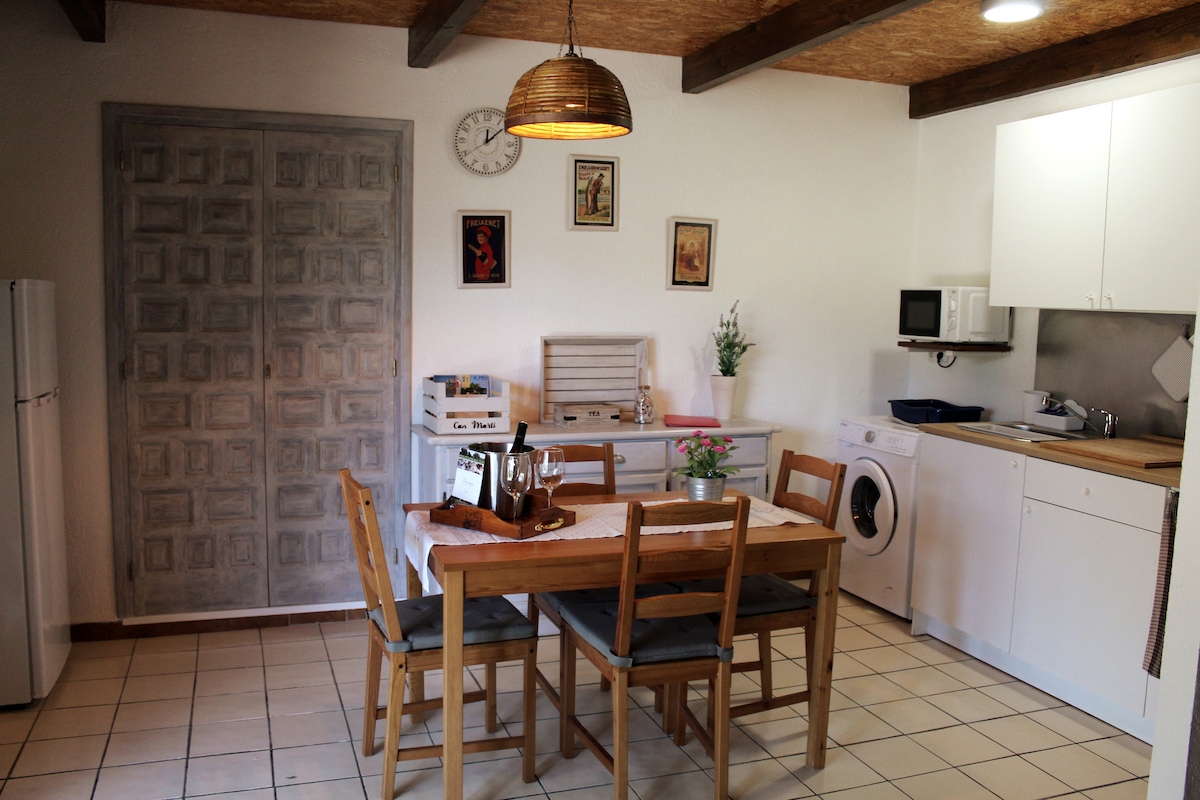 Alojamiento único en el corazón del Empordà, muy cerca de las playas y los pueblos más bonitos de la zona. Apartamento de invitados con entrada independiente desde la calle. Con dos plantas, con cocina, comedor y sala de estar en planta baja, y dormitorio con aseo en planta superior. Jardín, piscina y barbacoa se comparten con la finca principal (propietarios de la finca) El espacio està adecuado para dos adultos. No es adecuado ni para niños ni para bebés.