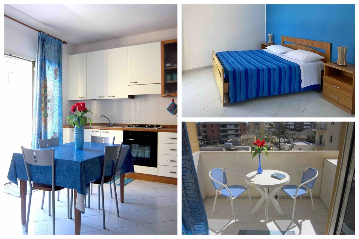 Alas en el viento Lo Stagnone - Marsala Apartamento reformado en la primera planta con vistas al mar, dominado por tonos azules que recuerdan al cielo y al Stagnone. ¡Vistas directas de Favignana, Levanzo y Marettimo! Características: • 1 dormitorio doble + dormitorio con 2 camas individuales • Terraza con luces LED para desayunos/cenas con vistas al atardecer Perfecto para: Kitesurf cerca de la casa (punto libre «Marsala Salinella») Carril bici, pizzerías y pastelerías a 50 metros Nadar en el mar en 30 segundos