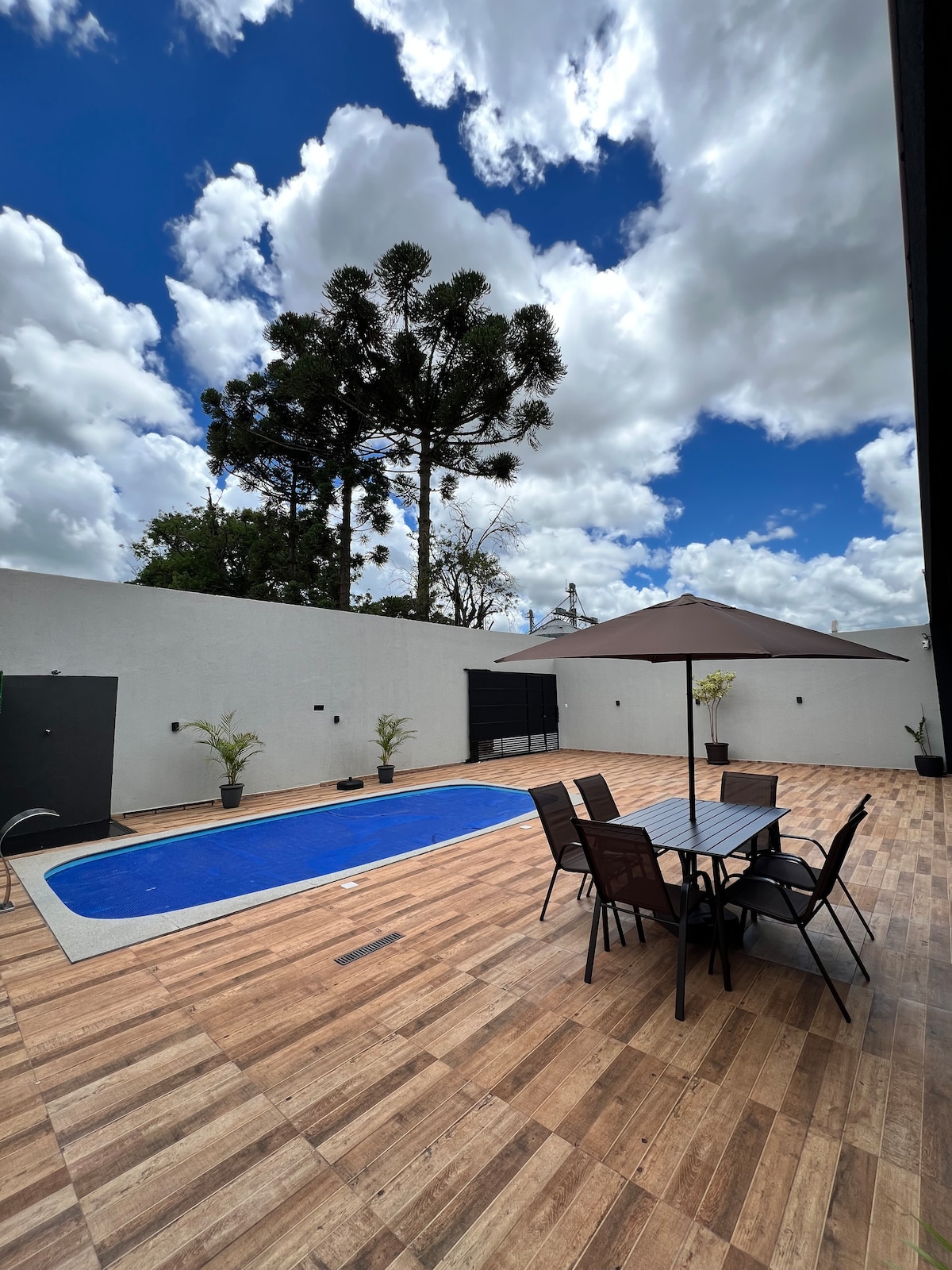 Leve toda a família a este ótimo lugar com muito espaço para se divertir, piscina aquecida 24hrs , 2 quartos com ar condicionado, na cidade belíssimas cachoeiras para conhecer e se aventurar , cidade muito tranquila , propriedade dentro da cidade . Na frente tem 2 araucárias onde vem pássaros o dia inteiro .