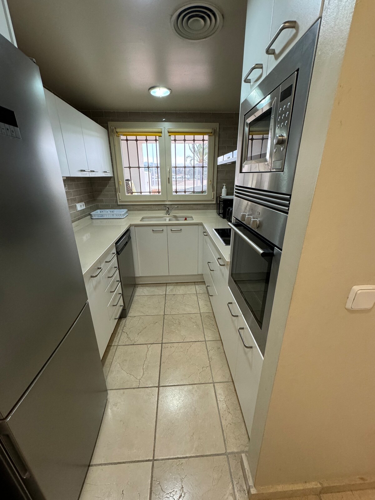 Design and brand new villa (independent with terraces with a private heated plunge pool) in a condo with swimming pool, garaje, kids play area and next to the beach. Full equiped kitchen. (220 meters in 3 levels) Stunning views of sea and mountains. Chalet independiente con parcela y piscina privada climatizada, en urbanización con piscina comunitaria, con acceso directo a la calle de la playa. Muy amplia, con Garaje. Zona muy tranquila. Frente a cala de piedra y a 300m playa arena