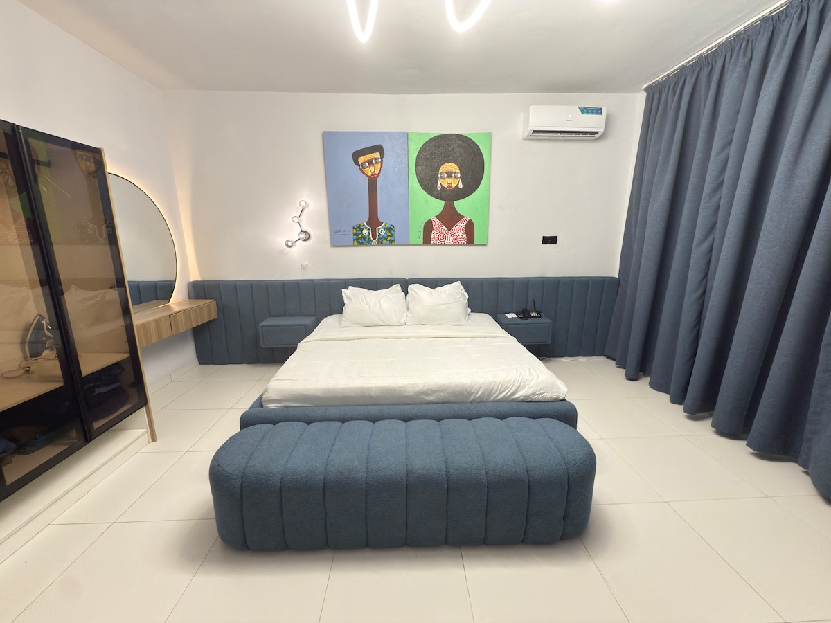 Disfruta de una gran experiencia en un apartamento elegante con ubicación céntrica, energía las 24 horas y wifi disponible, que tiene centros comerciales, cine, restaurantes y una gran vida nocturna, todo a 10 minutos en coche. Los 2 dormitorios tienen baño privado y cuentan con su propia televisión. También tiene un gran espacio de trabajo completo con un monitor de escritorio de 27", una silla ergonómica y una mesa eléctrica que puedes ajustar a cualquier altura mientras trabajas. Perfecto para tus vacaciones y estancias prolongadas a distancia. #YourplaceinLagos