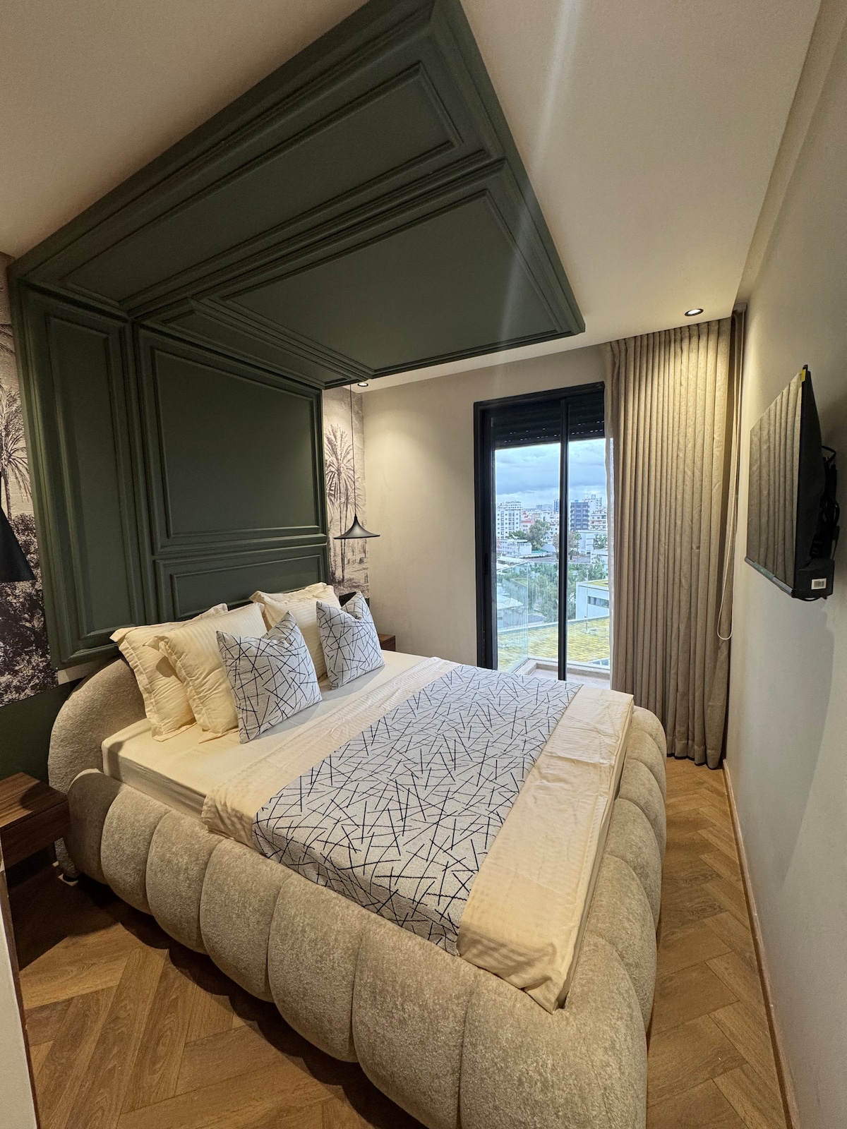 ¡Butterfly 703🦋, un remanso de paz donde la elegancia de una residencia moderna se combina con la comodidad de los hoteles de 5* en el corazón de Casablanca! Relájese en una amplia sala de estar de diseño moderno, equipada con Smart TV de 55’ con Netflix e IPTV para noches de relajación absoluta. La habitación, un verdadero nido acogedor, le promete noches tranquilas y reparadoras ☁️ ¡Desde su balcón privado, admire las espléndidas puestas de sol sobre la ciudad, haciendo que cada momento de su estadía sea inolvidable! ✨