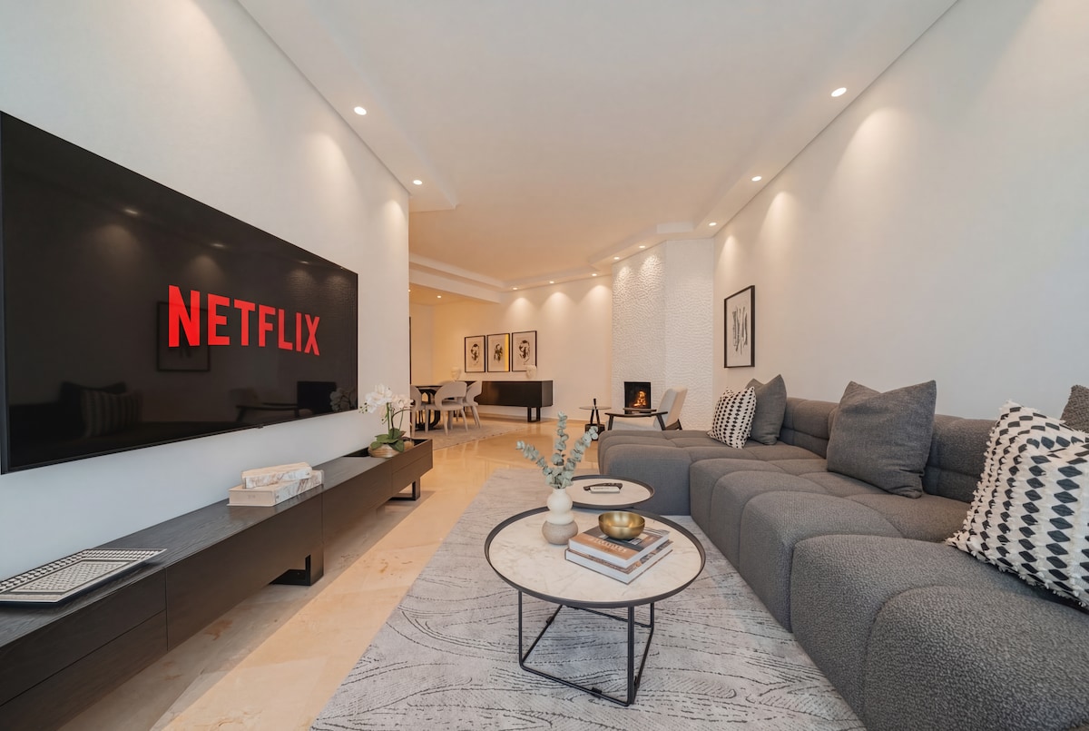 ¡Vive el lujo en pleno centro! el apartamento consta de 2 habitaciones con 2TV Netflix, una de ellas suite, 2 salones panorámicos con 2 TV, comedor, cocina totalmente equipada. Wifi 100 Mb, 2 baños con duchas italianas, azotea privada con pérgola bioclimática, estacionamiento privado gratuito y edificio seguro con cámaras. A 2 pasos del Triángulo de Oro, tiendas, guardería a poca distancia de la playa a 10 minutos. Comodidad absoluta para 6 personas con todo el equipamiento moderno necesario para tu comodidad