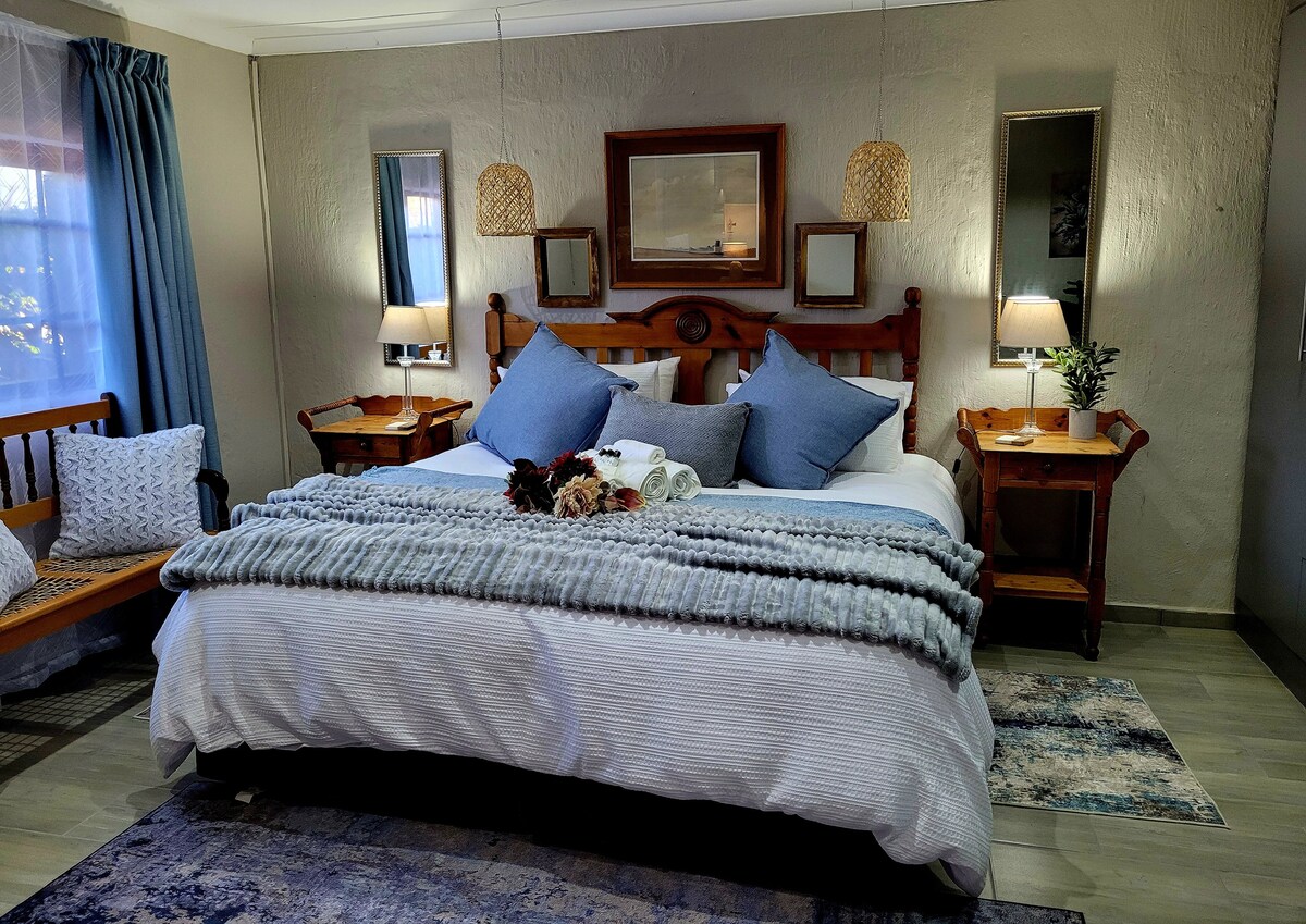 Ubicada en la tranquila campiña del Estado Libre Oriental en Rosendal, esta encantadora casa de arenisca centenaria de 3 dormitorios ofrece un refugio sereno para hasta 8 huéspedes. Su elegante fachada se integra armoniosamente en el entorno, lo que ofrece un escenario pintoresco para una escapada relajante. Cada uno de los tres dormitorios es un santuario de comodidad y estilo, con ropa de cama de lujo, cómodas mantas eléctricas y su propio baño privado. El ambiente sereno garantiza una noche de sueño reparador.