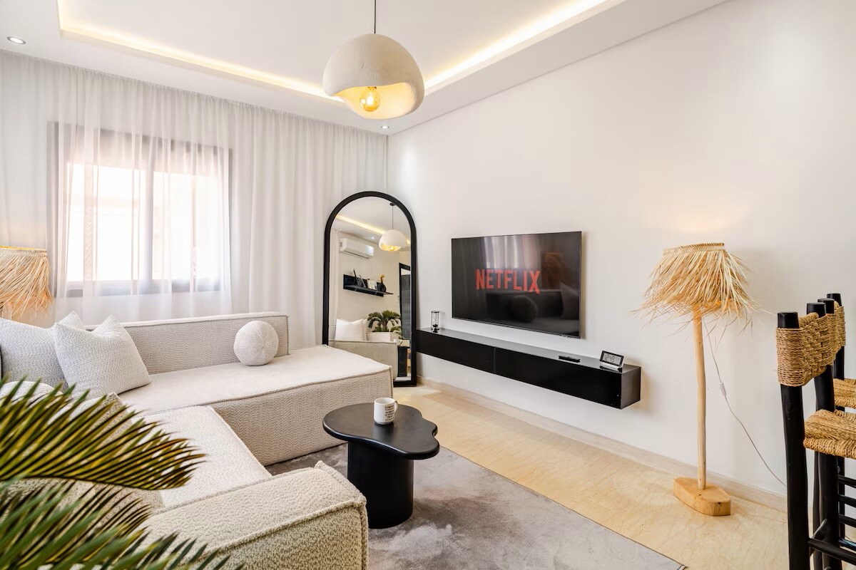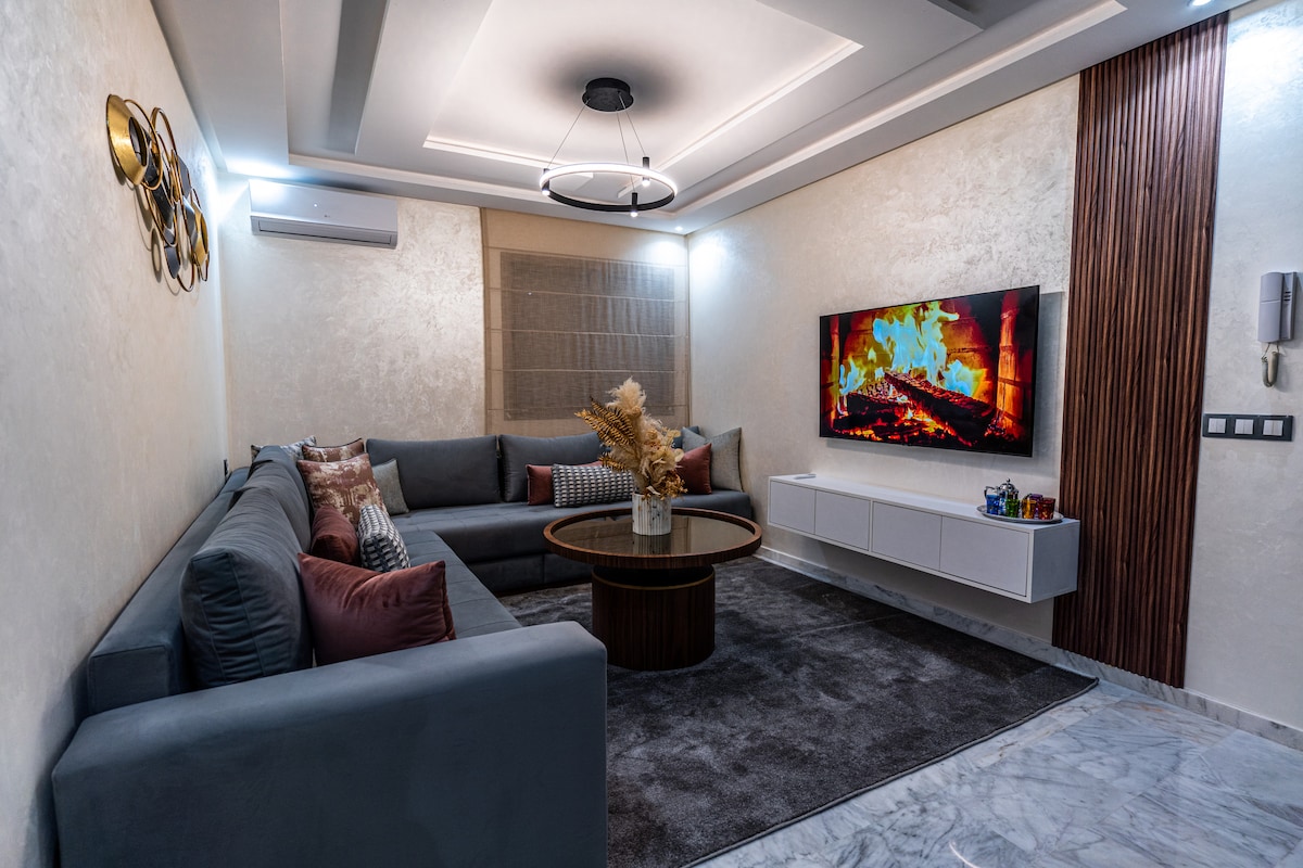 Welcome to our thoughtfully designed 1 bedroom apartment with Jaccuzi, where positive energy flows through every inch. in the center of Gueliz 10 min walk from carré Eden and the 5 minutes from the train station. Perfectly situated, you'll be surrounded by an array of restaurants, cafes, and shops. Well Equipped, we've taken care of every detail, high-speed internet, IP TV, Netflix, ensuring a seamless experience and make your stay stress-free