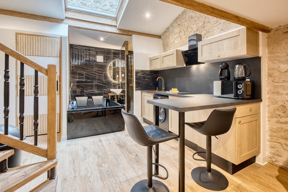 Les Apparts de l'Echafaud le dan la bienvenida en su edificio con entramado de madera completamente renovado del siglo XIII. Situado en el centro histórico de Périgueux, se puede ir andando a todas partes. Durante su estancia con nosotros, disfrutará de... ★ un apartamento con aire acondicionado ★ una cocina americana totalmente equipada ★ ropa de cama Queen size de calidad ★ una ducha espaciosa ★ acceso gratuito a Netflix y wifi Visite Périgueux en las mejores condiciones. ¡Hasta pronto! François su anfitrión.