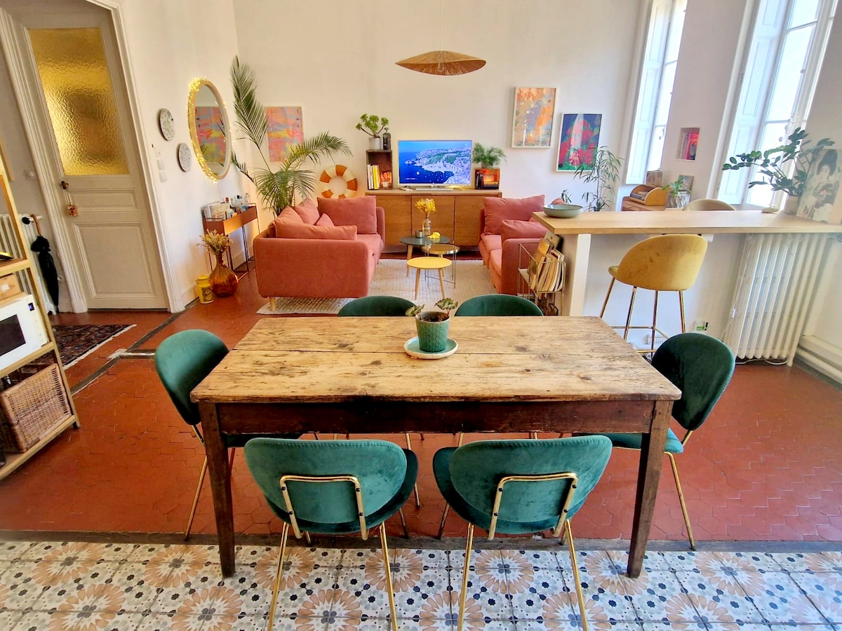 Descubra nuestro apartamento con decoración pop vintage recién reformado y con unas vistas impresionantes de la majestuosa Catedral de la Major, así como vistas laterales al mar. Situado en el corazón de Marsella, muy cerca del Puerto Viejo y del Panier, este apartamento cuenta con un comedor, una luminosa sala de estar, 2 dormitorios, uno de ellos en el altillo, así como un baño inolvidable. ¡Su ubicación ideal lo convierte en un apeadero perfecto para su estancia en Marsella!