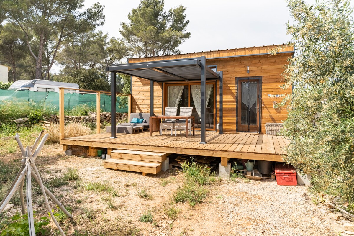 Chalet (40m2) reformado en 2018. Sala de estar/cocina que se abre a 1 dormitorio con SDB contiguo (inodoro separado accesible desde la sala de estar). Jardín arbolado de 400m2+estacionamiento cerrado. ¡Bronceado y barbacoas al sonido de las cigarras! Autobús gratuito a 3 minutos que le llevará a la estación de tren en 5 minutos (CV). ¡Gran parque a 2 minutos a pie! Marsella,Cassis están a menos de 20 minutos y Aix-en-prov a 30 minutos aprox. ¡Ubicación ideal para sus vacaciones! Estamos disponibles para cualquier duda. ¡Ofrezco sesiones de kinesiología en el lugar! ¡Nos vemos!