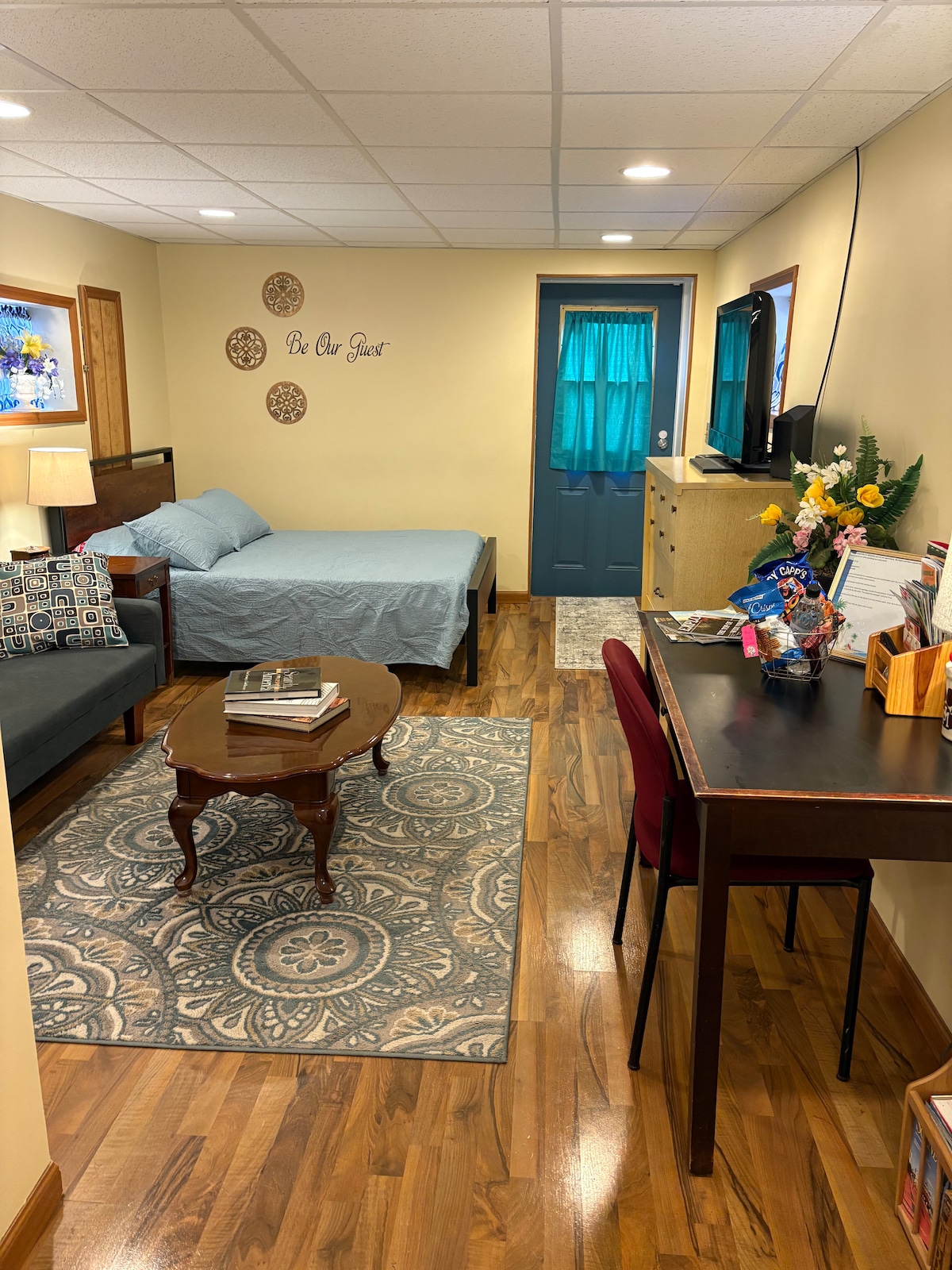 Acogedor estudio amueblado a solo 1,3 millas del parque Grand Vue, cuenta con dos cómodas camas, sábanas limpias, TV inteligente, wifi de alta velocidad y una cocina pequeña con nevera, microondas y cafetera Keurig. Barrio tranquilo y seguro cerca de restaurantes y tiendas. Perfecto para profesionales que viajan o para cualquier persona que busque una estancia tranquila.