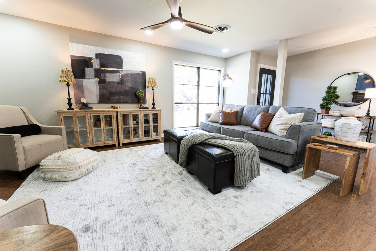 ✹ Discounted longer stays ✹ Level 2 EV charger in 2 car garage ✹ 1 Gbps Ultra High Speed wifi ✹ 65 inch 4K LED TV with DVD player ✹ Private backyard w/ spacious lawn + Covered patio seating + BBQ grill ✹ Full kitchen ✹ Luxury Memory Foam beds in all bedrooms with 1 King +2 Queen+1 convertible Futon bed ✹ Well behaved pets allowed on case by case basis ✹ Central location close to local restaurants, grocery and attractions Need more TVs- consider our newest offering airbnb.com/h/zendelight