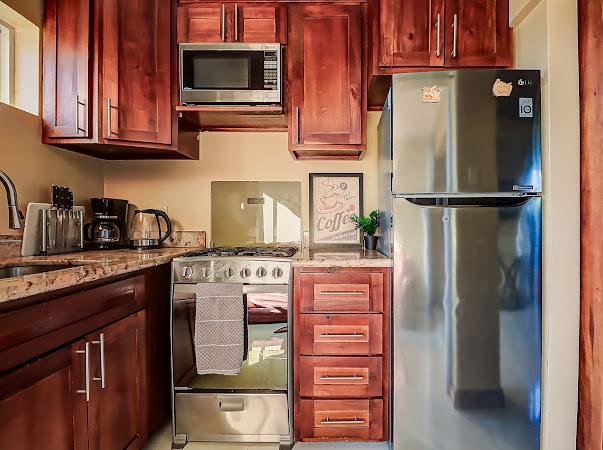 ¡Bienvenido a nuestro acogedor apartamento de 1 dormitorio y 1 baño en la hermosa ciudad de Martha Brae, Jamaica! Nuestro apartamento recién reformado es la escapada perfecta para parejas, viajeros solos o familias pequeñas. El dormitorio cuenta con una cómoda cama tamaño queen y el baño está equipado con ducha y todos los elementos esenciales. La sala de estar está equipada con un televisor de 55 pulgadas y la cocina tiene todos los electrodomésticos, utensilios de cocina y utensilios necesarios para que puedas cocinar tu comida y disfrutarla en el patio con parrilla.