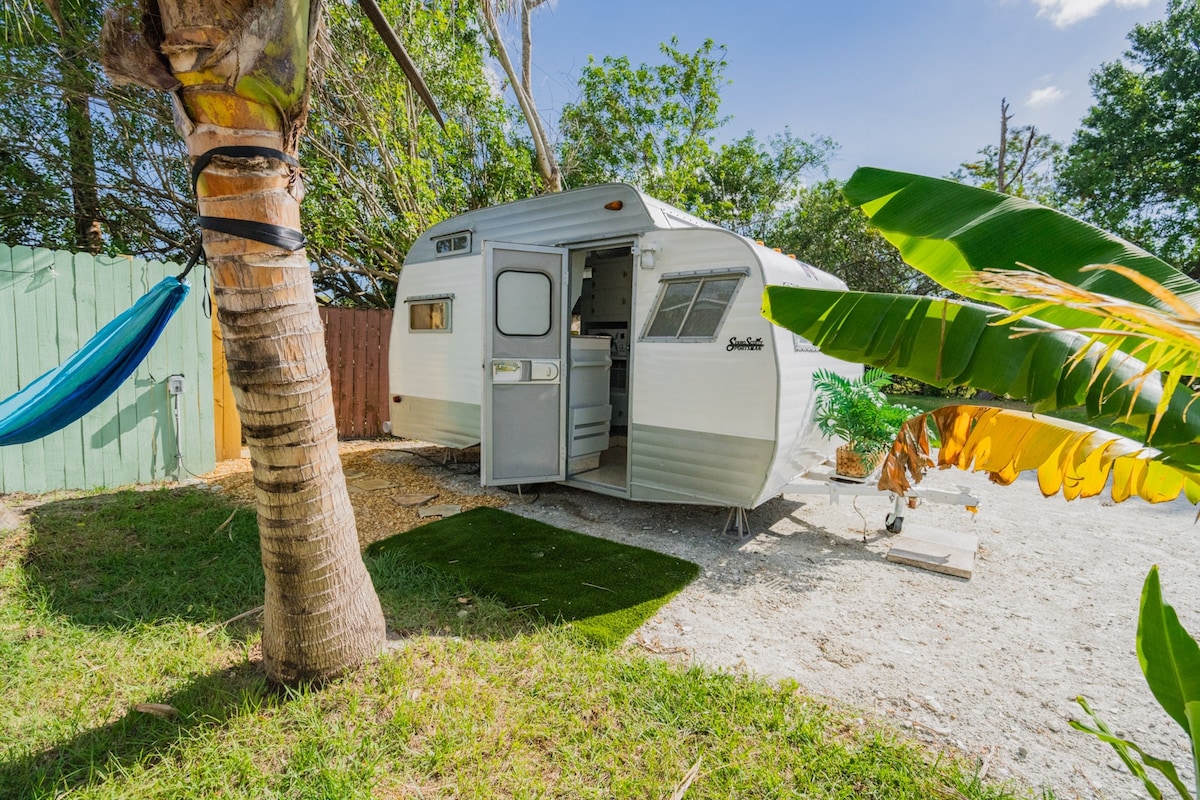 Vive simplemente en esta caravana vintage de la década de 1960. Ubicado cerca de playas y pesca en Stuart Fl. “La capital mundial del pez vela” ¡Este proyecto fue creado para sentir que vuelves a los años 60 con estilo! ¡La caravana Feliz simplifica la vida! Cocina en la barbacoa, dúchate bajo las estrellas y disfruta de un pequeño espacio sencillo para relajarte después de un gran día en la costa del tesoro. Diseñado para estancias más cortas y asequibles y muy cerca de todo. Ven a visitarnos y conviértete en una “casa rodante feliz” 🌴