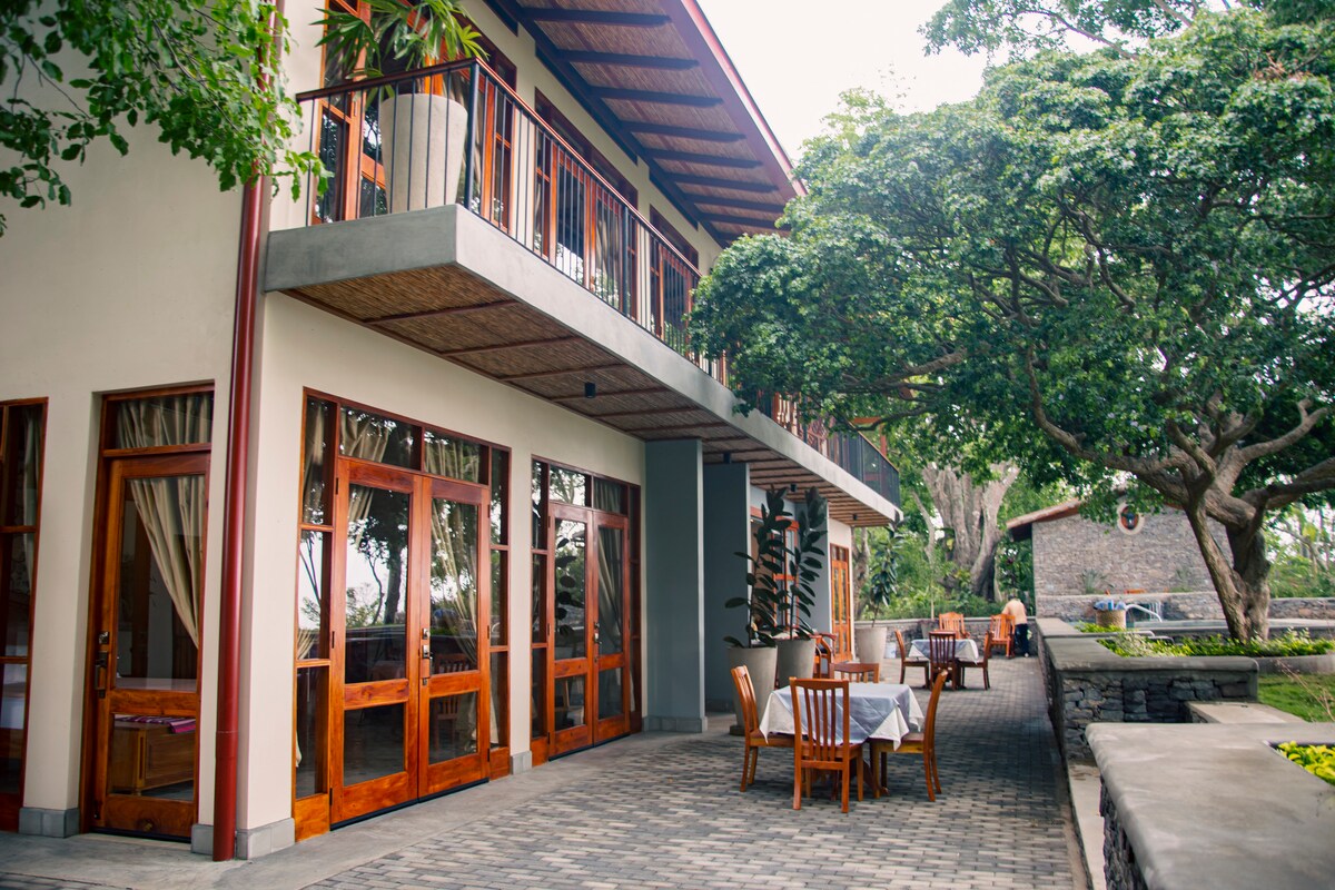 Esta propiedad es realmente única. Nos encantaría que experimentaras tanto la impresionante vista exterior como los elementos de renacimiento español de la casa en el interior. Ubicada en el borde noroeste de un volcán extinto en la Reserva Natural de la Laguna de Apoyo, la vista es... ¡espectacular! Mirando desde la terraza del Castillo, frente a ti se encuentra el antiguo lago volcánico Apoyo. A lo lejos, se puede ver el volcán Mombacho, el lago Nicaragua, la ciudad de Granada y las Isletas, y a veces Concepción.