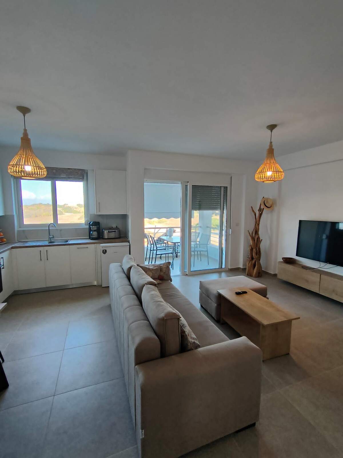 Galini is a modern, comfortable ground-floor apartment 44 m² and has recently been completely renovated, ideal for those who require privacy and quite. It's suitable for families and people with disabilities as its large veranda has no steps. Close to the center of the village, Galini has an easy access to the sea since it is 70m far from the beach. It is also close to supermarkets, restaurants, café and watersports. Lastly, opposite of its front entrance a free parking lot is located.