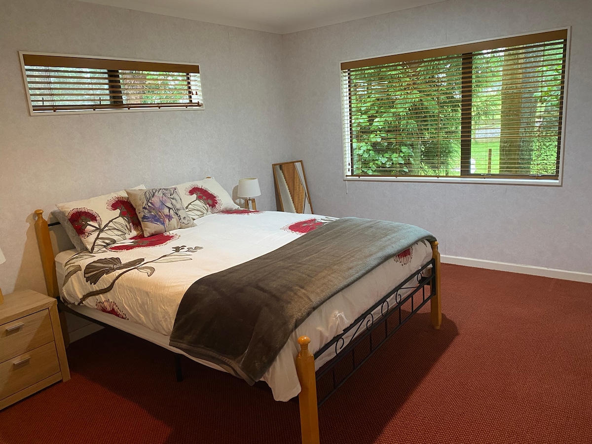 Come relax in a warm vibe, gorgeous decor, spacious studio under the oaks…. with all mod cons and creature comforts supplied…. complete with a 1955 Bal Ami jukebox for your listening pleasure Wayyyyy better than a noisey motel - Super comfy Queen sized bed, tiled shower, full size fridge/freezer, microwave/oven /ceramic stove top. Treat yourself to a little bit rural, little bit fabulous private pad to enjoy & chill in. Close to Hobbiton Close to expressway & airport & Bootleg Brewery