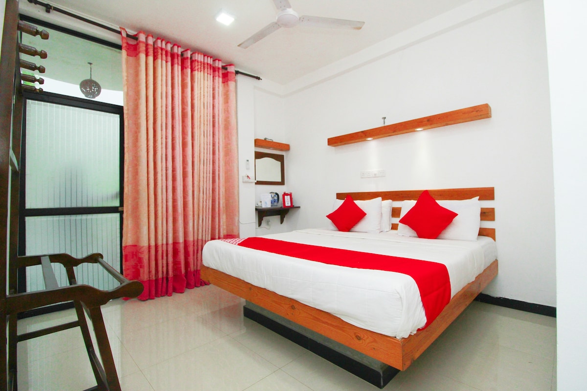 Enjoy a comfortable stay in our spacious room featuring two double beds and an attached private bathroom, making it ideal for couples, families, or friends. Guests can relax in the shared common area and prepare light meals in the open kitchen. Surrounded by lush greenery, the property offers a calm and peaceful environment, perfect for unwinding and enjoying nature while having all essential comforts for a pleasant stay.