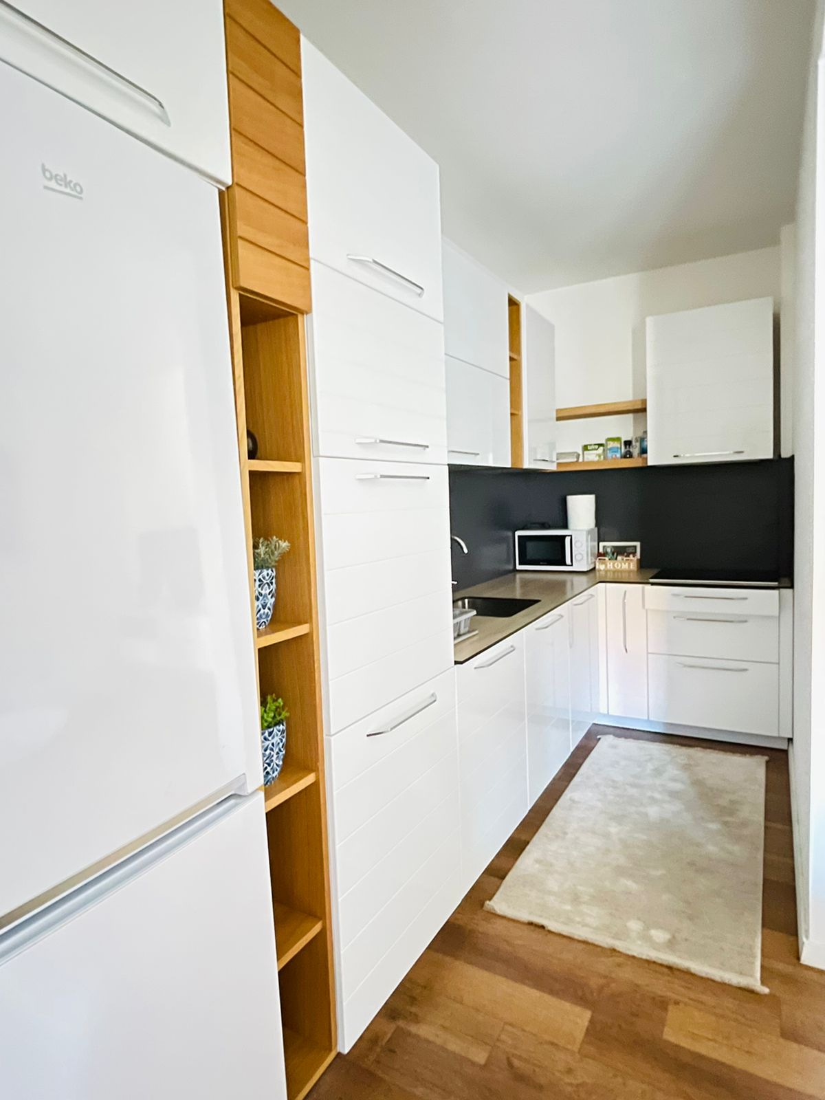 El apartamento Ruby está diseñado en un estilo moderno, combinando elegancia con comodidad. El interior presenta líneas limpias, tonos neutros y muebles contemporáneos cuidadosamente seleccionados. Las grandes ventanas permiten que la luz natural inunde el espacio, creando un ambiente luminoso y acogedor. Cada detalle está cuidadosamente seleccionado, desde la decoración minimalista hasta los materiales de alta calidad, ofreciendo una experiencia de vida elegante y acogedora. Ideal para quienes aprecian la estética moderna y el diseño funcional.