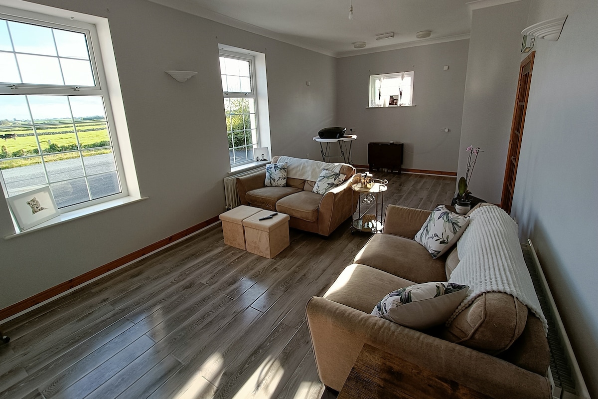 Situada a solo 1,5 kilómetros de la hermosa ciudad de Westport, nuestra casa de dos dormitorios de nueva construcción está perfectamente ubicada, rodeada de tranquilos paisajes y a poca distancia de la bulliciosa ciudad. Siéntate y relájate en nuestra elegante cocina de planta abierta, comedor y sala de estar. Nuestra casa familiar incluye un amplio dormitorio doble con baño privado y un dormitorio con literas. Todas las comodidades modernas, incluido wifi y Smart TV con Netflix. Una gran base para explorar las delicias de la bahía de Clew y la impresionante costa oeste.