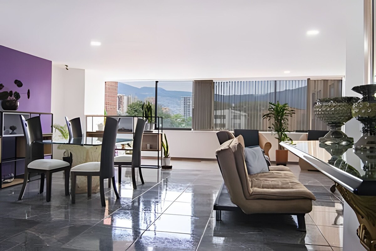 4 bedroom penthouse in Provenza featuring expansive terraces with panoramic city views. The property includes a private jacuzzi and air conditioning throughout. Ideal for families or groups, this stylish space offers contemporary comforts and situated moments from Medellín's best dining and nightlife. Be advised this is a FAMILY-ORIENTED building with children residing in upper floors. Any disruptive activities or violations of community rules will incur significant fines