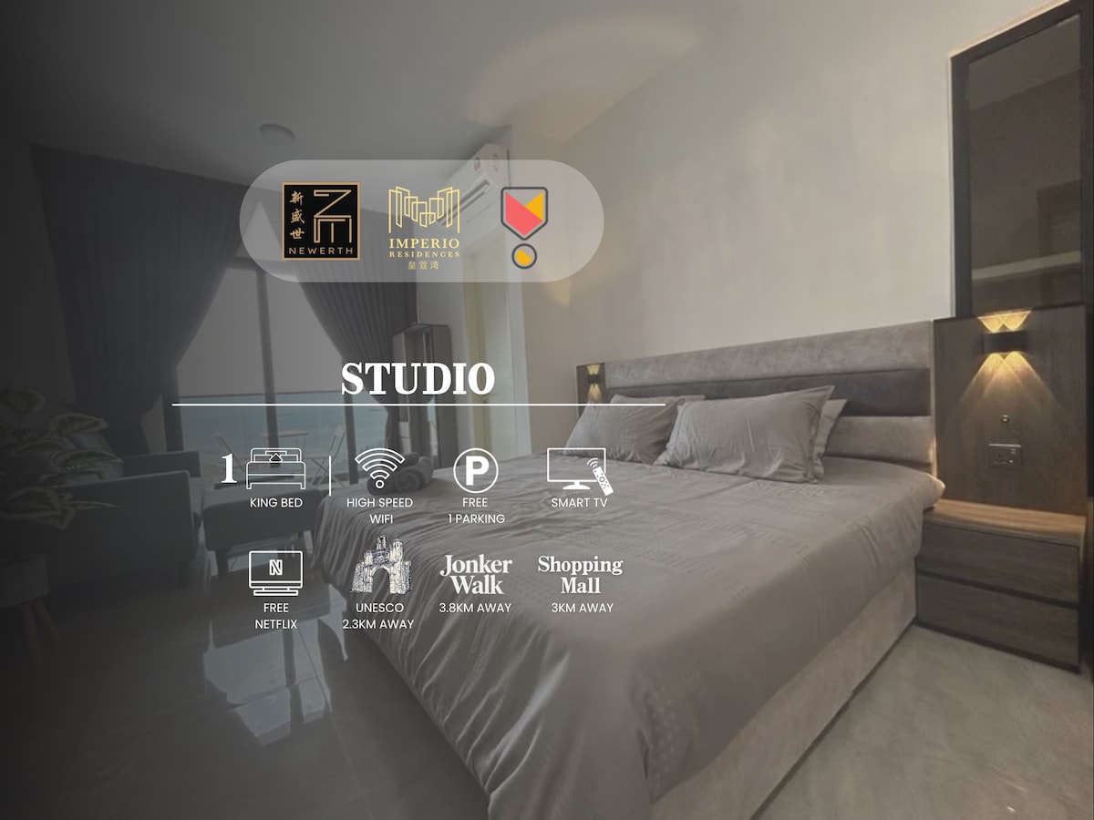 —Studio— Imperio Residence - Habitación acogedora con baño y bañera. - Agua fría/caliente ajustable. - Cama tamaño king x1. - Almohada x2 - Armario - Despierta la mesa con el espejo. - Aire acondicionado - Wifi de alta velocidad -YouTube y Netflix. - Vista a la piscina - Piso alto. - Paquete de decoración: cumpleaños/aniversario/propuesta De 200 RM a 9999 RM *Estacionamiento de pago. RM6/entrada