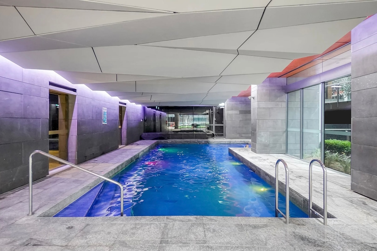 Alojamiento espacioso de 2 habitaciones en el CBD|Piscina y gimnasio cerca del Marvel Stadium