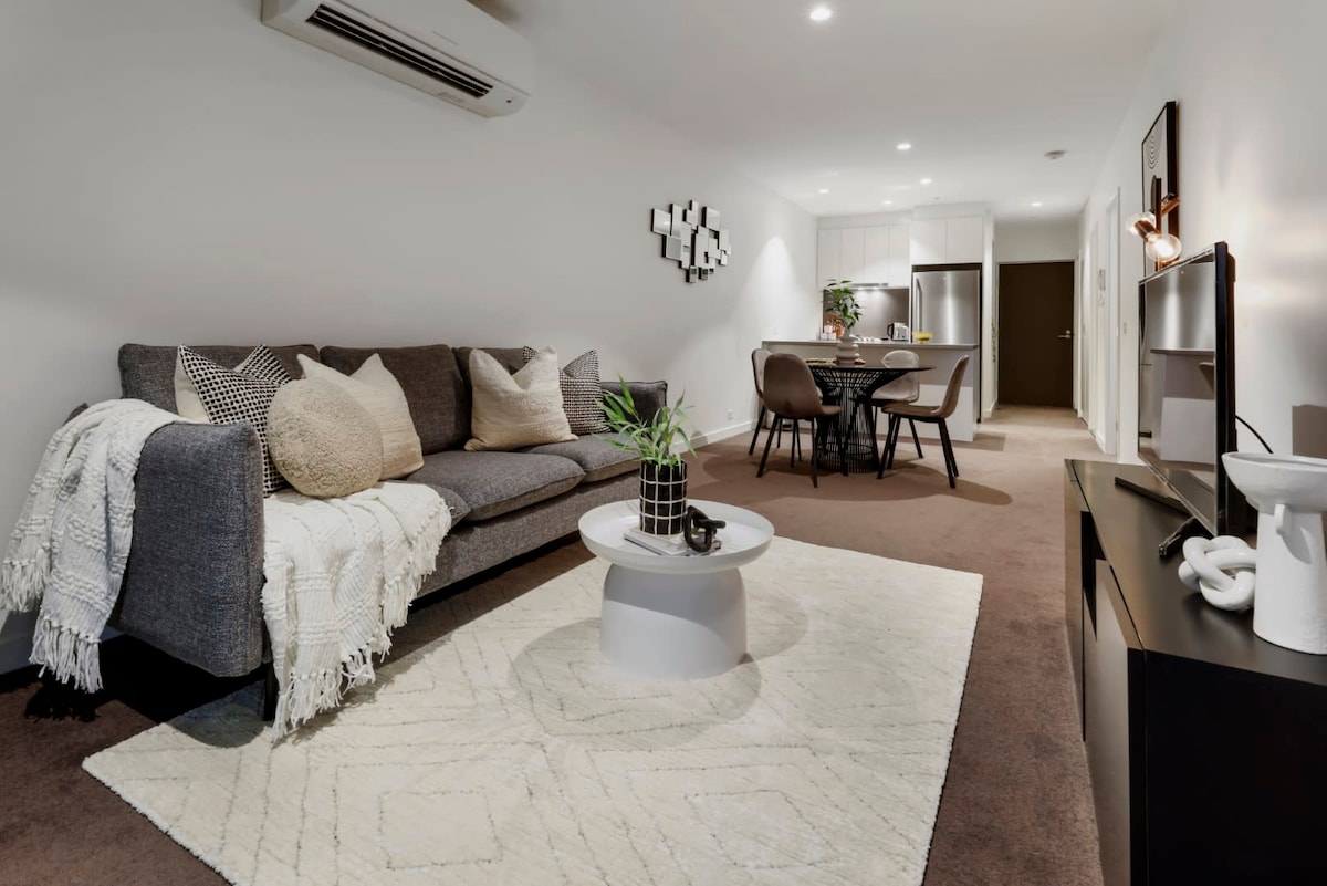 ¡Camina a todas partes + zona de tranvía gratuita a tu puerta! Disfruta de un apartamento de 1 dormitorio luminoso, acogedor y extraespacioso en el corazón del distrito financiero de Melbourne. Pasea hasta el Crown Casino, Southbank, DFO, MCEC y el río Yarra, con el MCG y el Marvel Stadium a pocos minutos. En el interior, relájate con wifi rápido, una enorme televisión inteligente de 65", balcón, cocina completa con cafetera de goteo, lavadora/secadora, calefacción y aire acondicionado, y check-in autónomo las 24 horas. A los huéspedes les encanta nuestra salida después de las 12:00, la cancelación gratuita las 24 horas y la flexibilidad de las reservas de última hora.