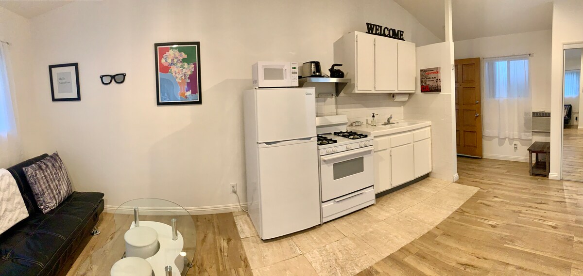 Un apartamento tranquilo y elegante situado en un bungalow californiano tradicional de los años 40. Este es un lugar perfecto para disfrutar de todo lo que Silver Lake tiene para ofrecer o para usar como base tranquila para trabajar a distancia. Estamos situados justo al lado del embalse y del parque para perros: el lugar ideal para tomar un café por la mañana y pasear mientras disfrutas del sol de Los Ángeles.