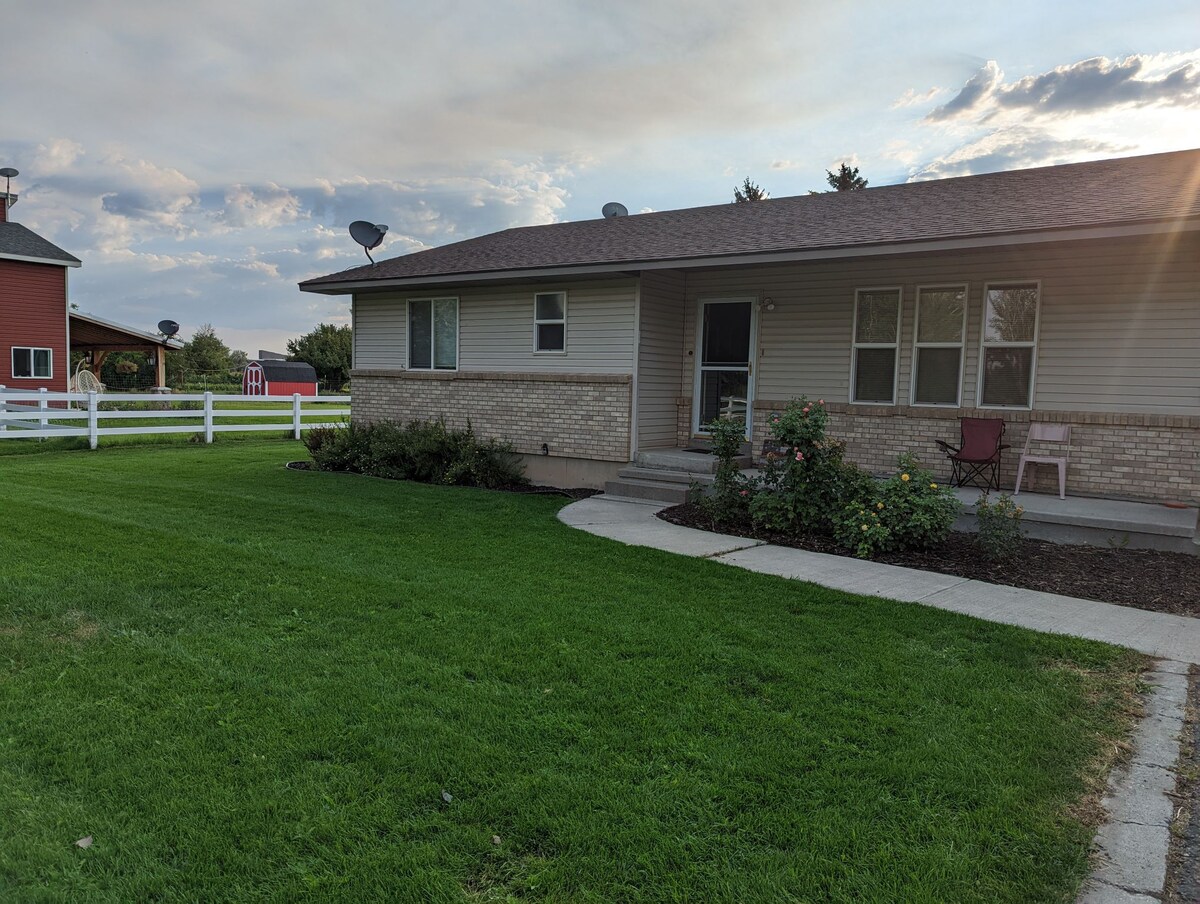 Bienvenido a nuestro espacioso y divertido apartamento de 1 dormitorio en el corazón de la tierra de aventuras al aire libre de Idaho. Ubicado entre amplios campos, este apartamento cuenta con una hermosa vista y un cómodo acceso a la autopista 20, BYU-I, Idaho Falls, el parque nacional Yellowstone (91 millas), el parque nacional Teton (109 millas), Island Park (62 millas) y Cráteres de la Luna (105 millas). Juega en un lago cercano o flota por el río Warm o Warm Slough. La pesca y la navegación están muy cerca. ¡Tenemos lo esencial cubierto para que puedas jugar, explorar o simplemente relajarte!