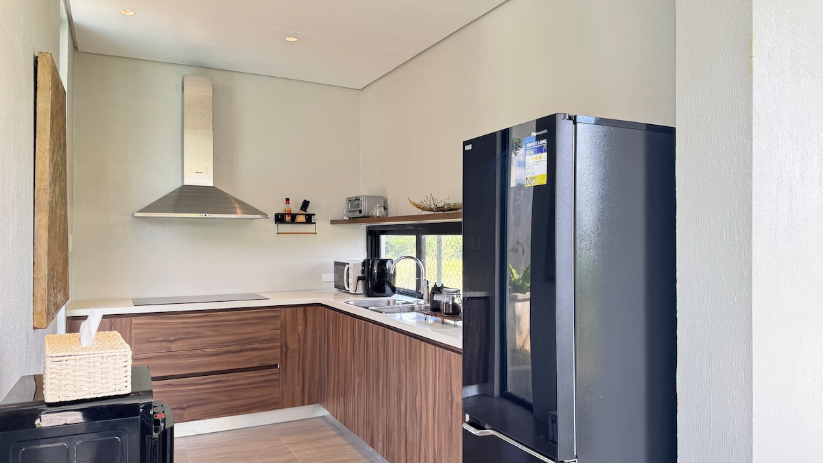 Esta villa tropical moderna de 380 metros cuadrados de nueva construcción está equipada con una piscina termal para disfrutar de un baño relajante mientras disfrutas de la brisa fría de Tagatay. BellaVilla cuenta con una vista de 360 grados de exuberantes zonas verdes y está cerca de los mejores restaurantes que Tagaytay puede ofrecer a lo largo de la carretera Tagaytay-Nasugbu. ACTUALIZACIONES A PARTIR DE (marzo de 2024): > NUEVO televisor OLED con Netflix para tu placer visual. > NUEVA ducha y urinario dedicados para la piscina. > NUEVA unidad de aire acondicionado en la habitación familiar del segundo piso.